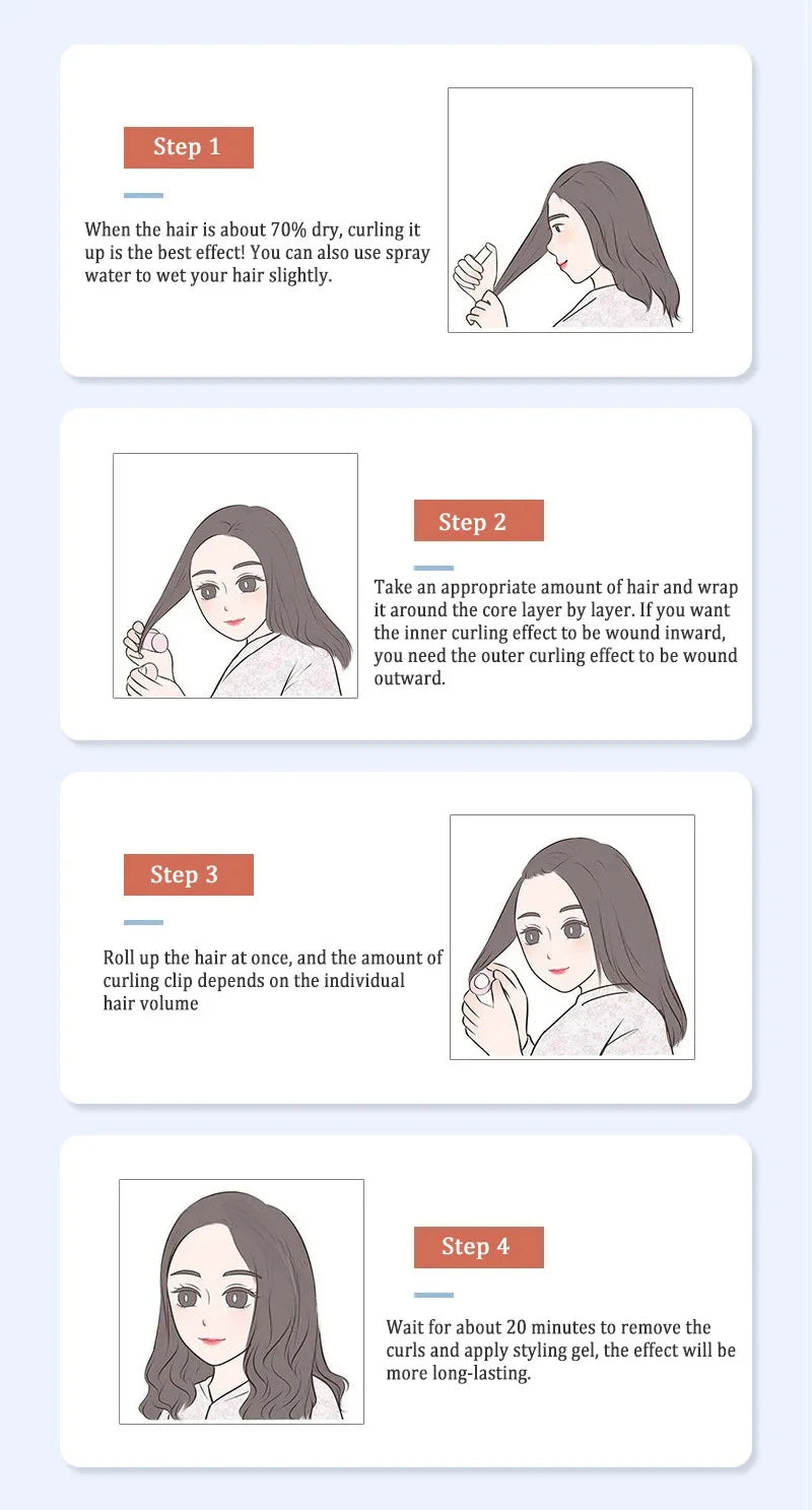 6pcs Hair Rollers Heatless Hair Curlers No Heat Hair Bangs Volume Self-adhesive Hook Curlers DIY Styling Tools & Accessories