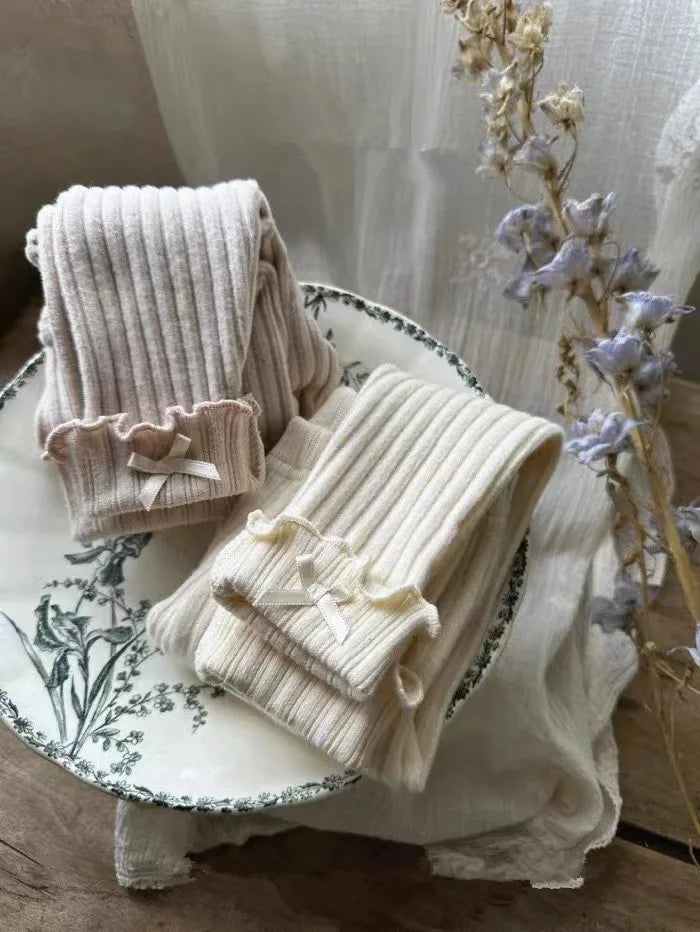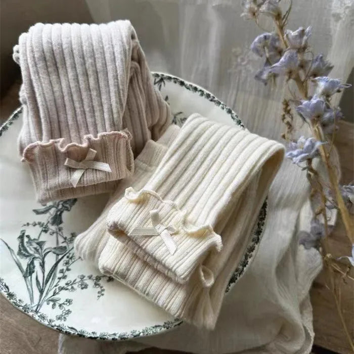 2025 Autumn New Baby Girl Ribbed Leggings Solid Tights For Infant Girl Cotton Casual Pants Toddler Versatile Slim Fit Trousers