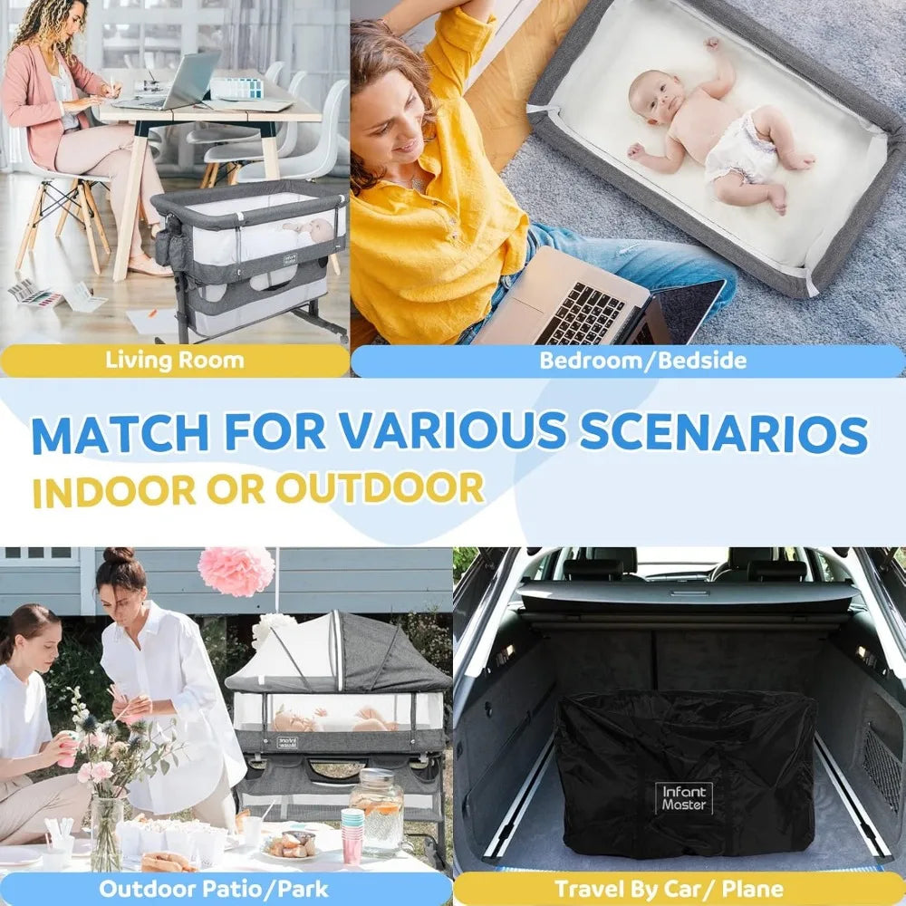 3 in 1 Baby Bassinet, Upgraded Beside Crib with 360° Highly Visible Mesh wall, Comfy Co-sleeper Bassinet with mattress, 5 Level