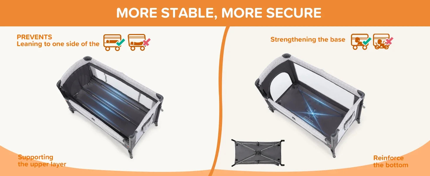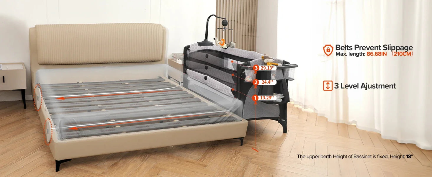 4 in 1 Wide Baby Bassinet Bedside with Diaper Changer, Long Next to Bed Crib with Mattress, Sheet, Music and Blackout Cover, Playpen