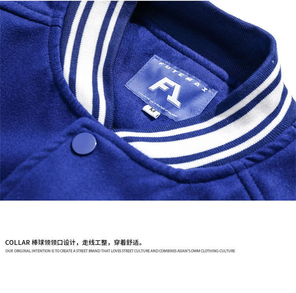 American Harajuku Blue Student Baseball Men's Coat Bomber Jacket fashion Spring Autumn Trend Hip Hop College Loose Casual Coat