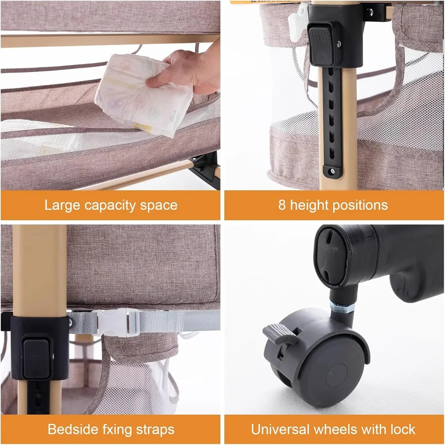 Baby Crib,3 in 1 Baby Bassinet Bedside Crib Adjustable Portable Bed for Infant, Baby Newborn Must Have Bed