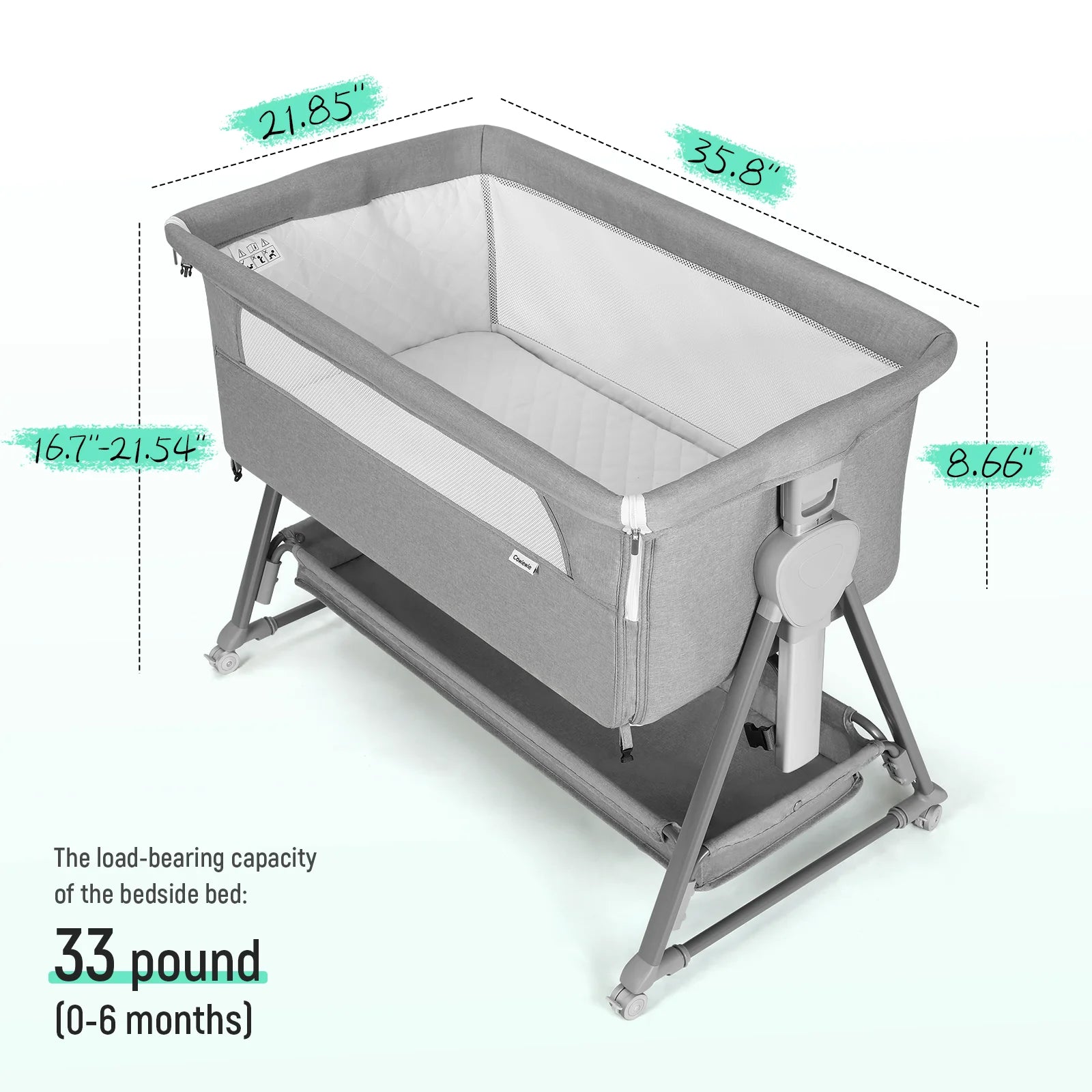 Bassinet for Babies Large Volume and Mobile with Storage Basket Bedside Sleepers for 0 to 6 Months Baby Infants
