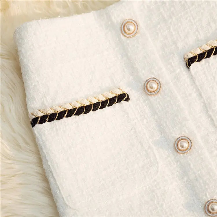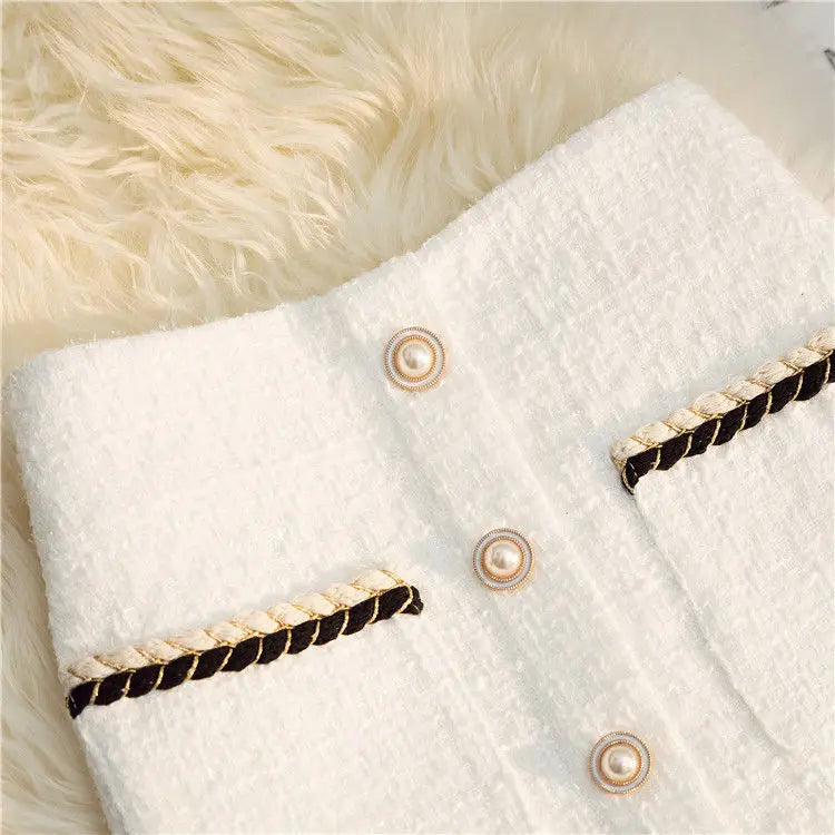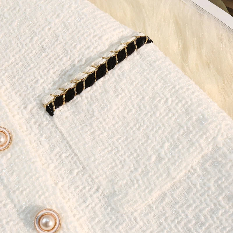 Black White Tweed Long Skirts Women Autumn Winter New Bright Silk Skirt Female Vintage High Waist A-line Wrap Skirt Office Lady