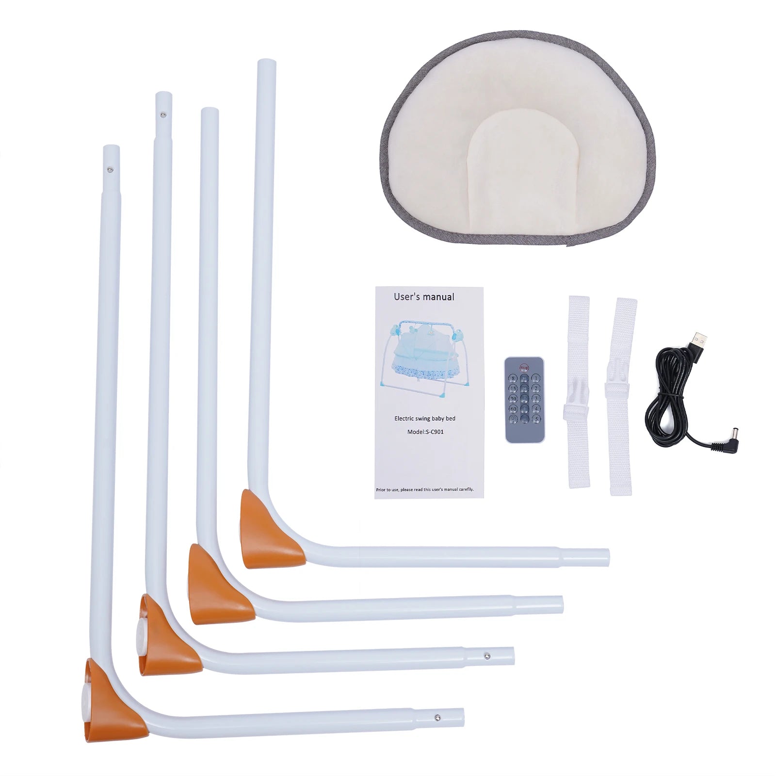 Electric Baby Cradle Auto Swing Rocker Cot Infant Sleeping Bed Swing Crib Kit Timer +Bluetooth Music +Mat +Pillow 5Gears Adjustable