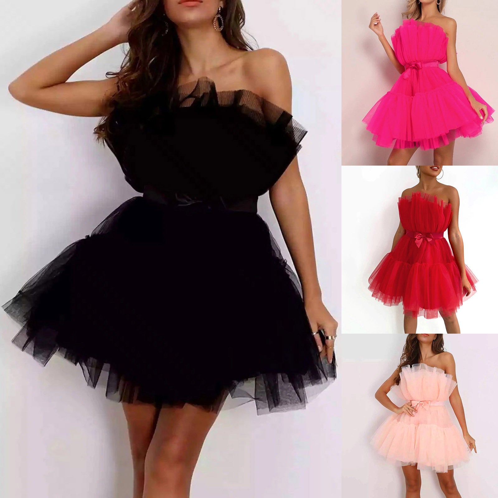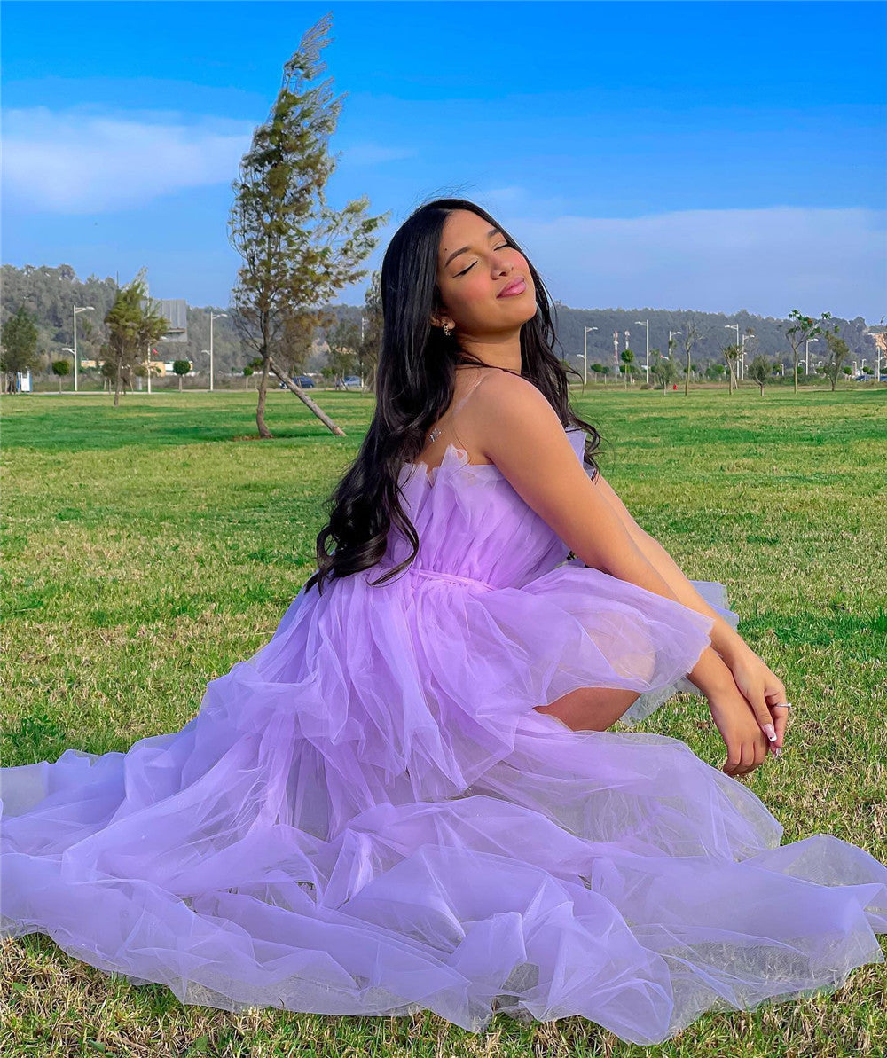 Elegant Mesh Tulle Wedding Party Dress for Women Strapless Off Shoulder High Waist Evening Gowns Formal Occasion Prom Dresses