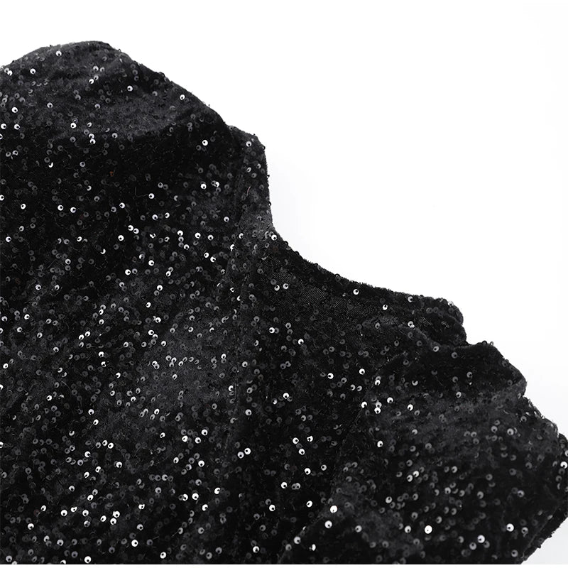 Elegant Woman Black Shiny Sleeveless Mini Dress Sexy Lace Up O Neck Slim Waist Short Dresses New Evening Party Vestidos 2025