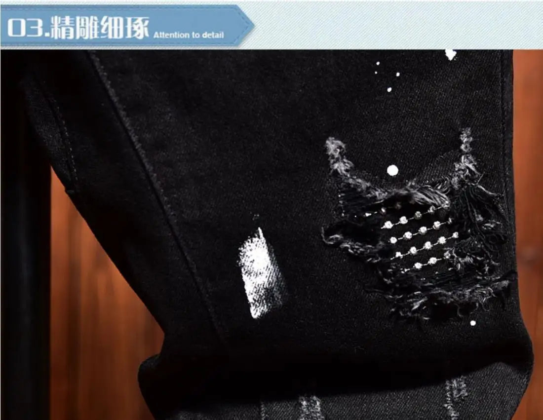 Fashion Trendy Slim Denim Jeans Men Distressed Ripped Holes Patches Spring Autumn Casual Design Korean Luxury Clothing Trousers