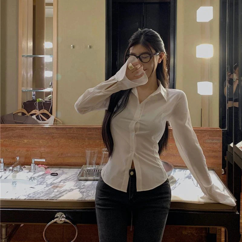 Fashion Women Bandage Shirts Korean All Match Streetwear Female Slim Blouse Spring Casual White Bell Sleeve Shirt New