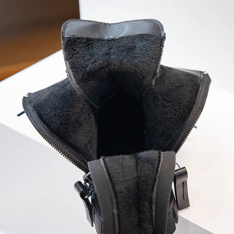 Girls Boots Simple Non-slip Back Zipper Summer Breathable Versatile Soft Autumn Winter Black Children Leather Boots 2025 New