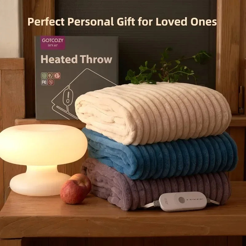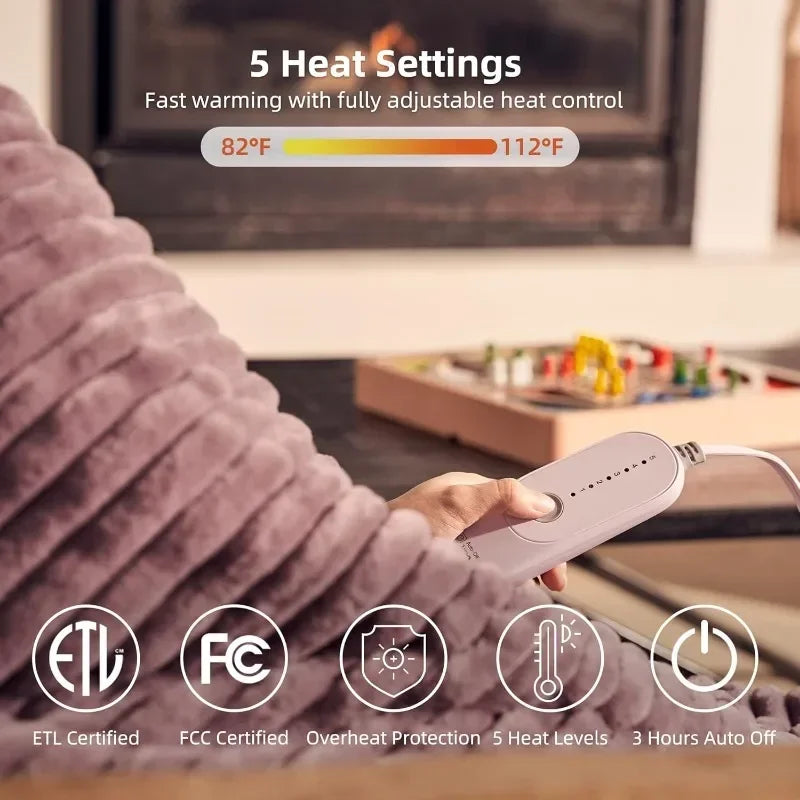Heated Blanket Electric Throw 50''X60''-Soft Silky Plush Electric Blanket with 4 Heating Level & 3 Hour Auto Off Heating Blanket