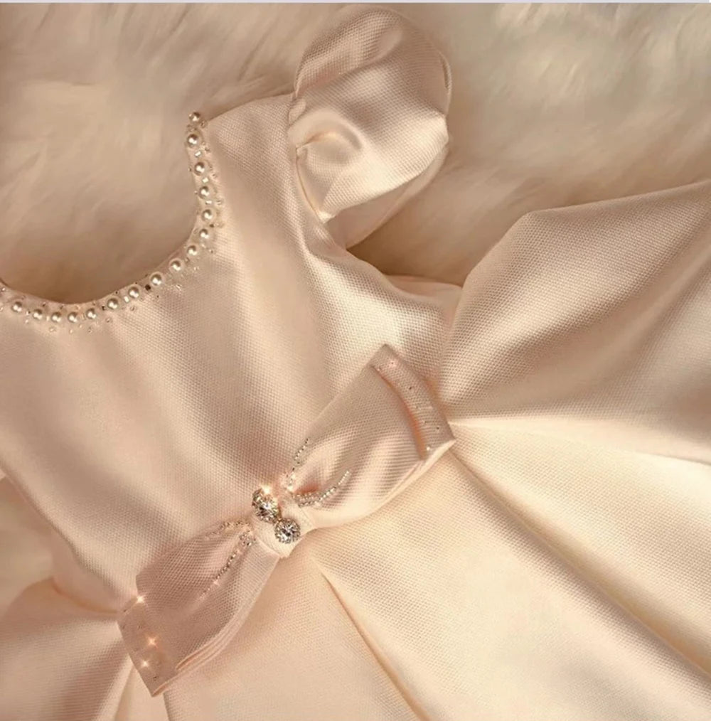 HETISO Baby Dresses for Wedding Pearl Necklace Girl Kid's Dress White Toddler Clothes Elegant Birthday Gown 1-8 Years