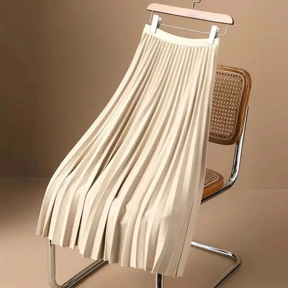 High Waist Pleated Skirt Elegant Women's Maxi Skirt with Elastic High Waist A-line Design Pleated Large Hem Solid Color for Work