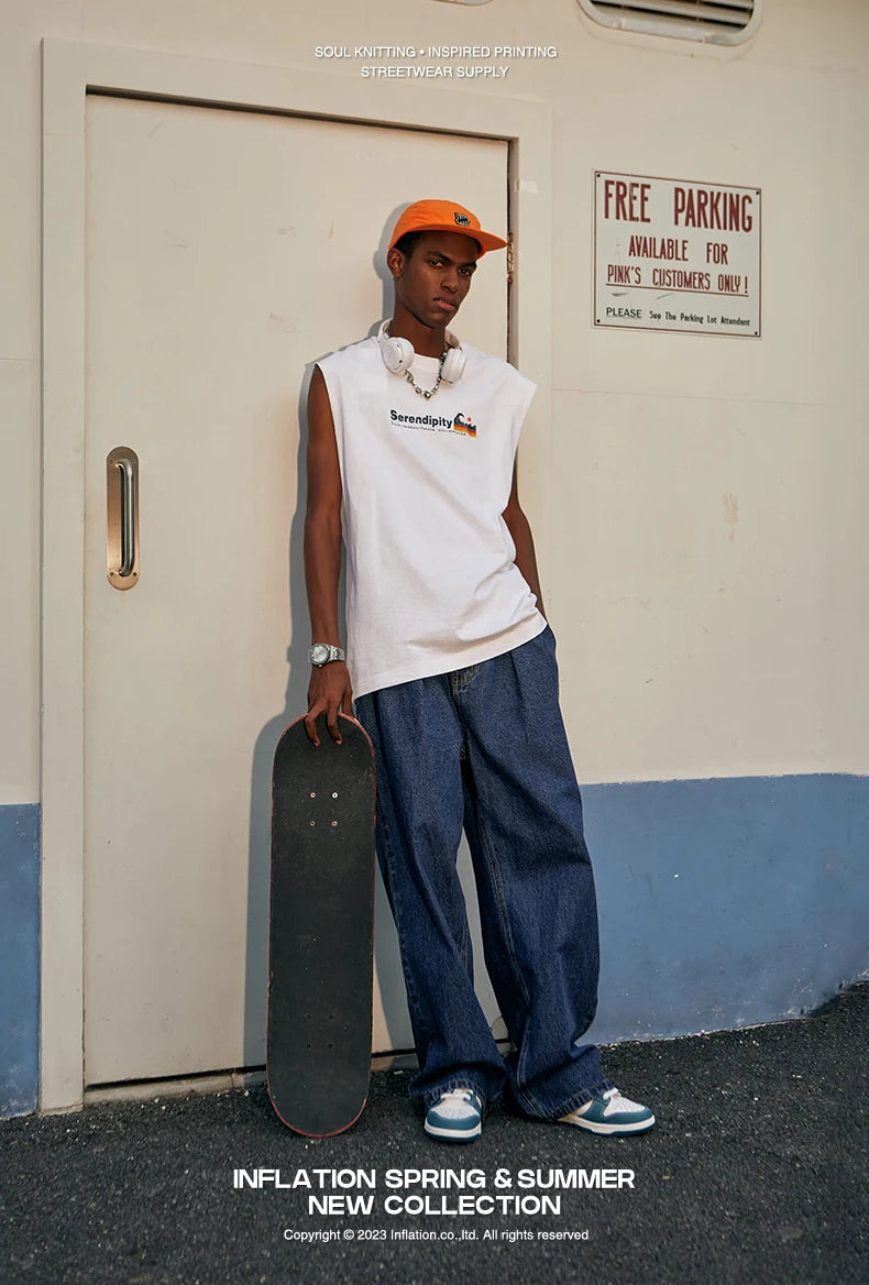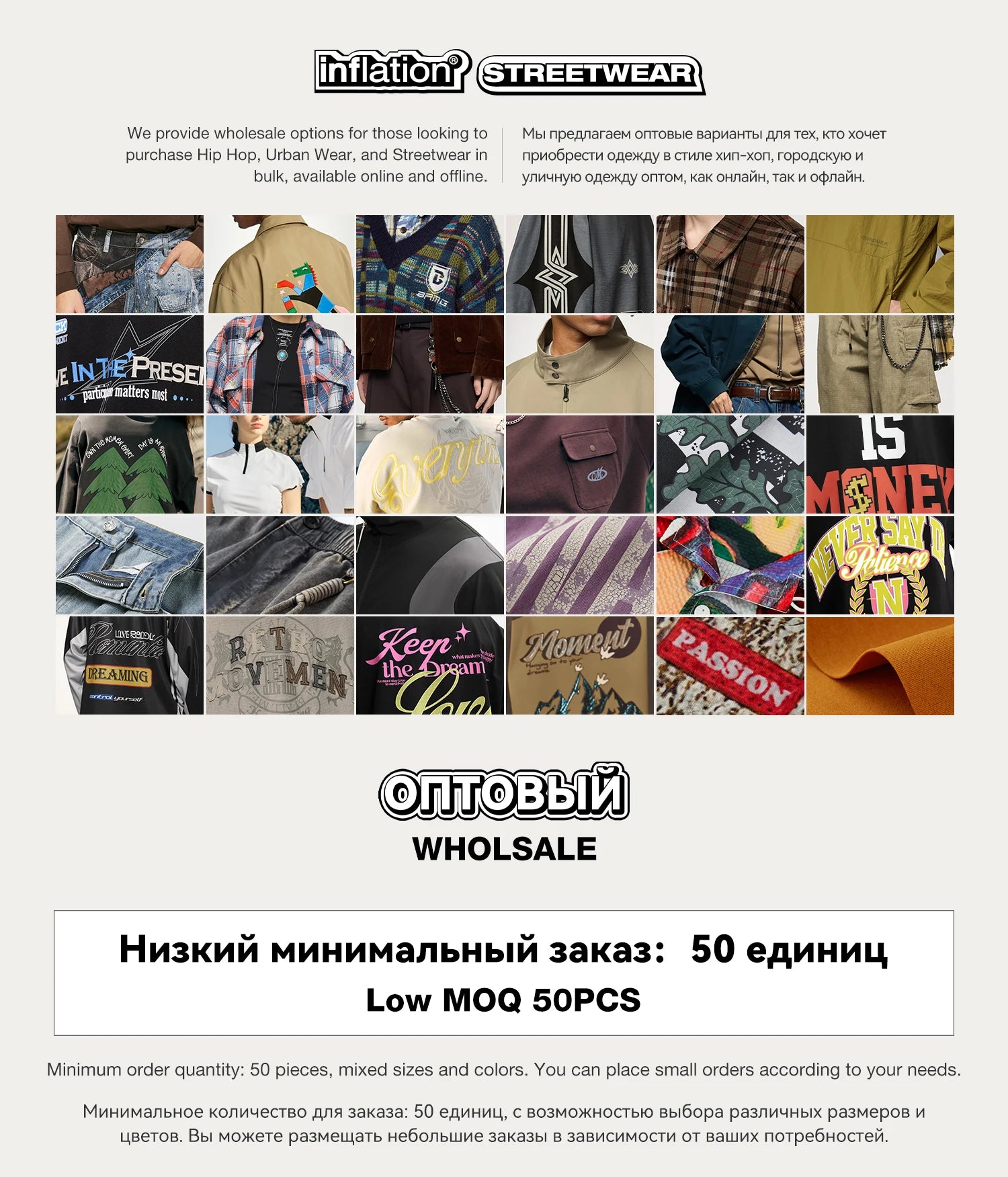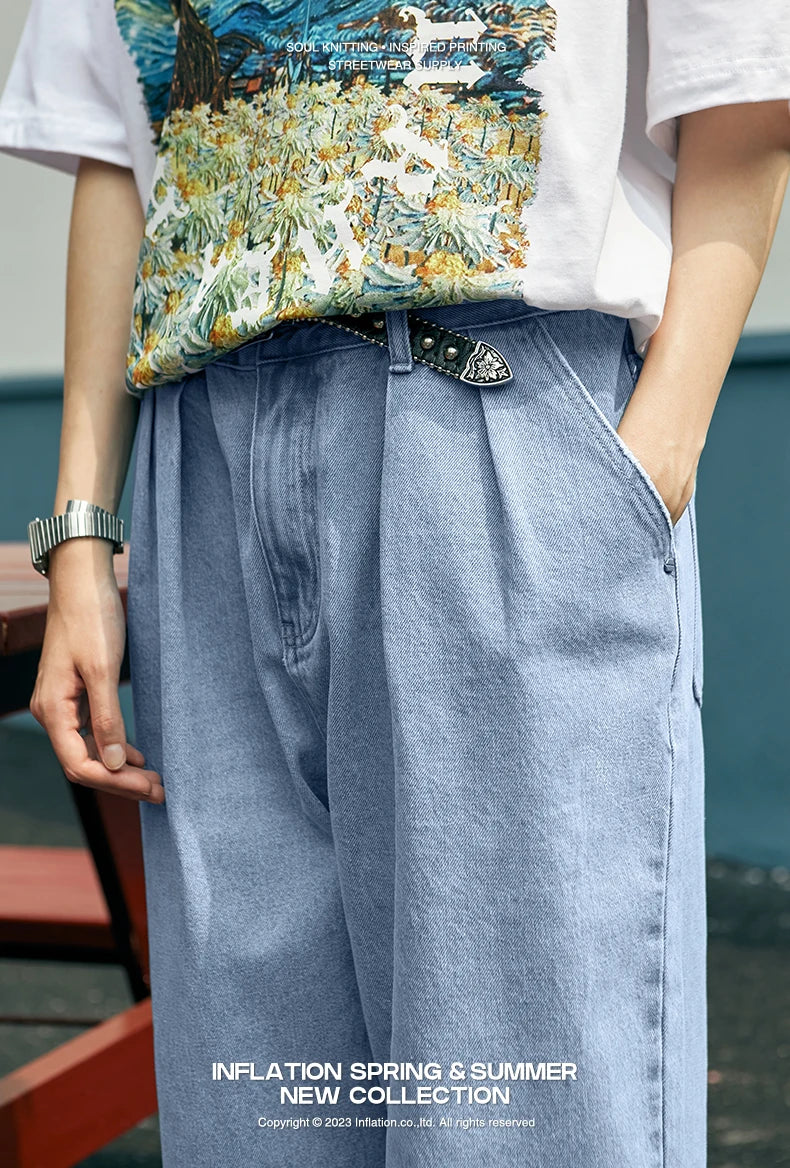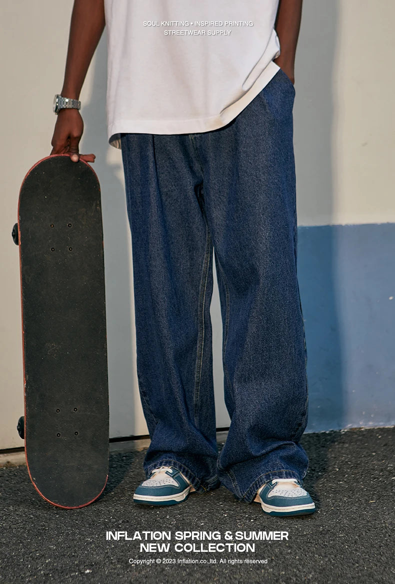 INFLATION Brown Retro Washed Denim Pants Unisex Classic Straight Leg Jeans Male Trouser Plus Size