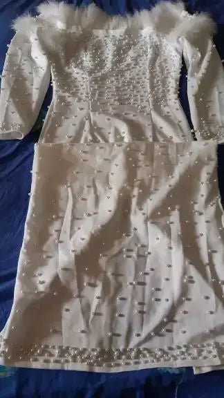 Luxury Feather Beading Party Dress For Women Sexy Off Shoulder Long Sleeve Elegant Bodycon Formal Event Evening Wedding Robes