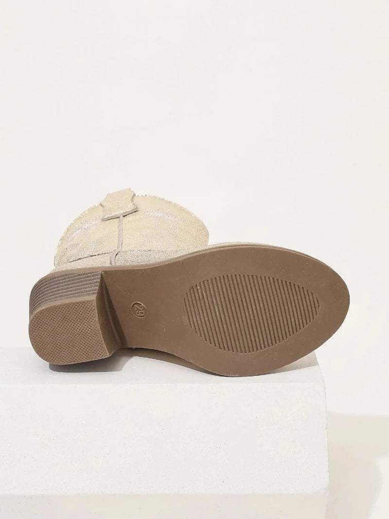 Luxury Gold Silver Western Knee High Boots Girls Premium Quality Slip-on Cowboy Long Booties Kids Heeled Point Toe Floral Botas