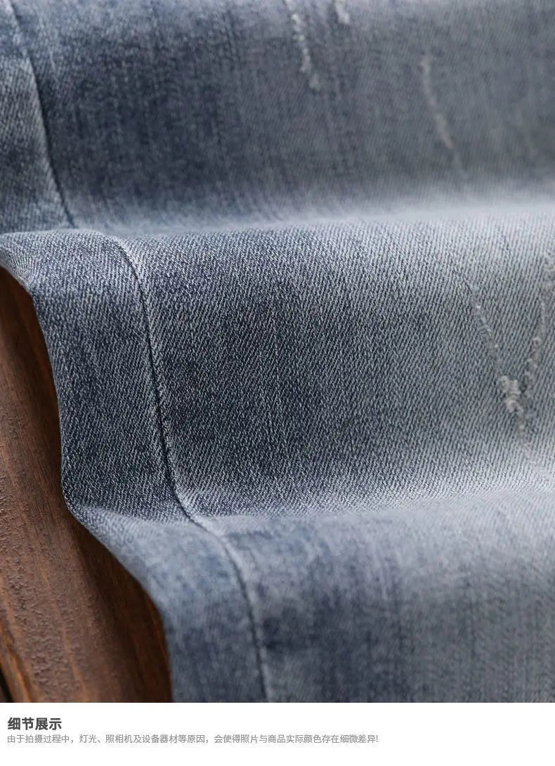 Korean Style Clothes Men's Denim Jeans with Elastic Waistband Drawstring for Washed Autumn Casual Stretch Jeans Male