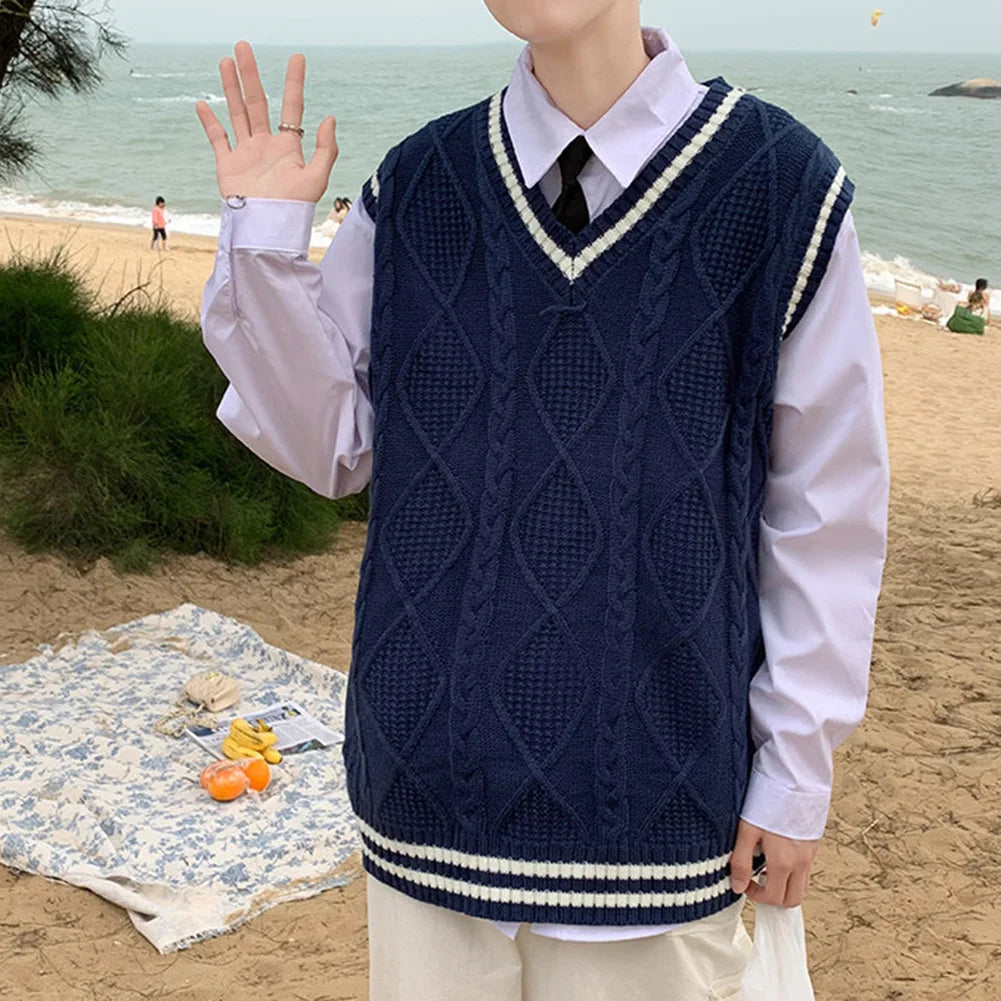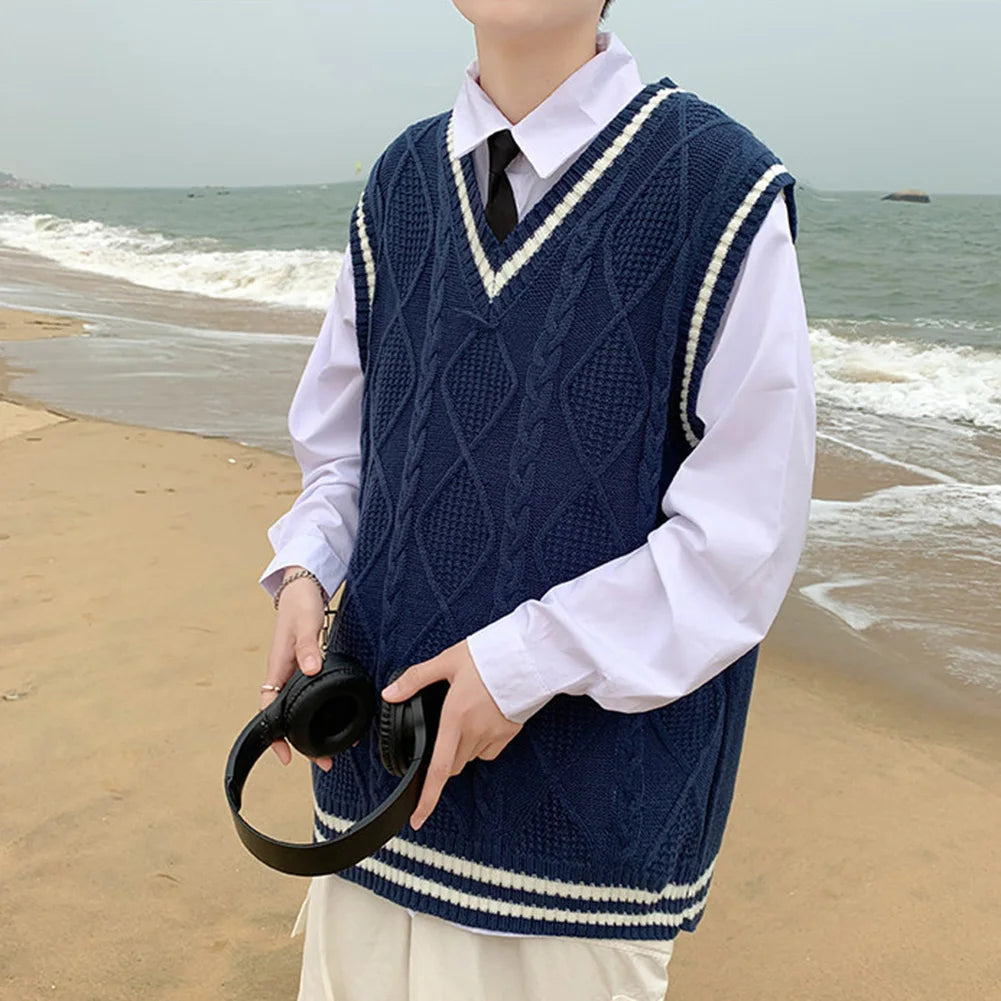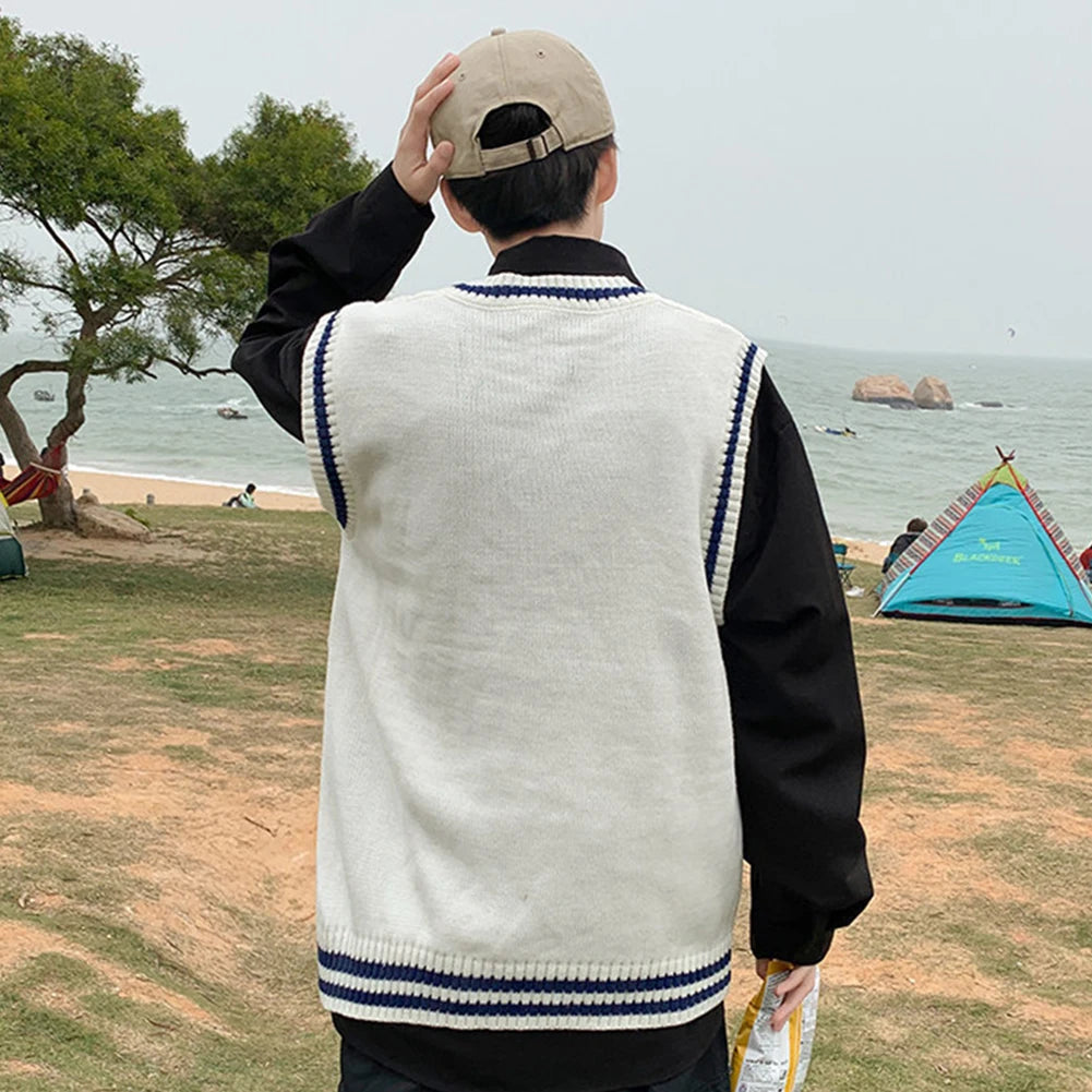 Men's Classic Contrast Color Thermal V-Neck Comfortable Cardigan Sleeveless Slight Stretch Solid Vest Simple Loose Waistcoat Tops