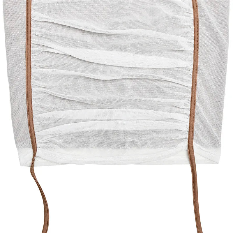 Diagonal Collar Long Sleeve Midi Dress For Women Two Layer Mesh Backless Ruched Bodycon Club Party Sexy Long Dress