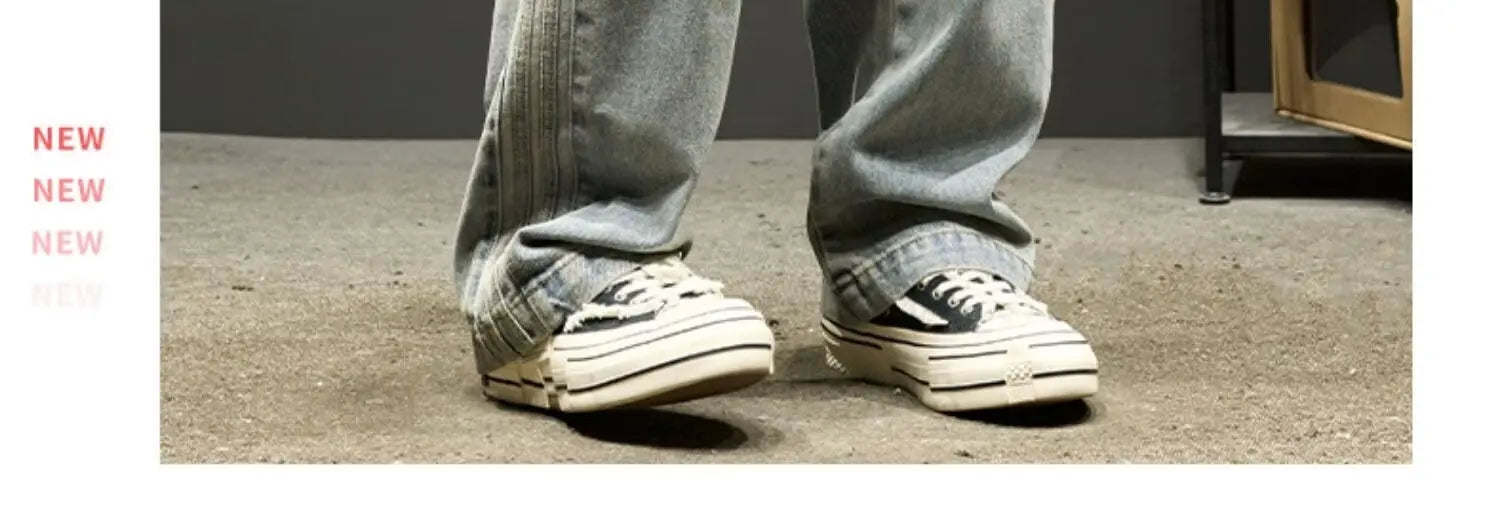 New American Retro Black Straight-leg Jeans For Men High-street Washed Fashionable Loose Wide-leg Floor-length Trousers Clothing