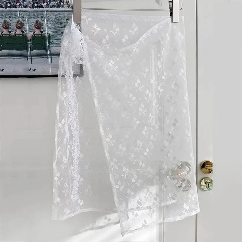 New Fashion Lace Layered Gauze Skirt with Tie Up Spicy Girl Stacked Skirt Y2k Streetwear Apron Wrap Skirt Lace Up Matching Pants