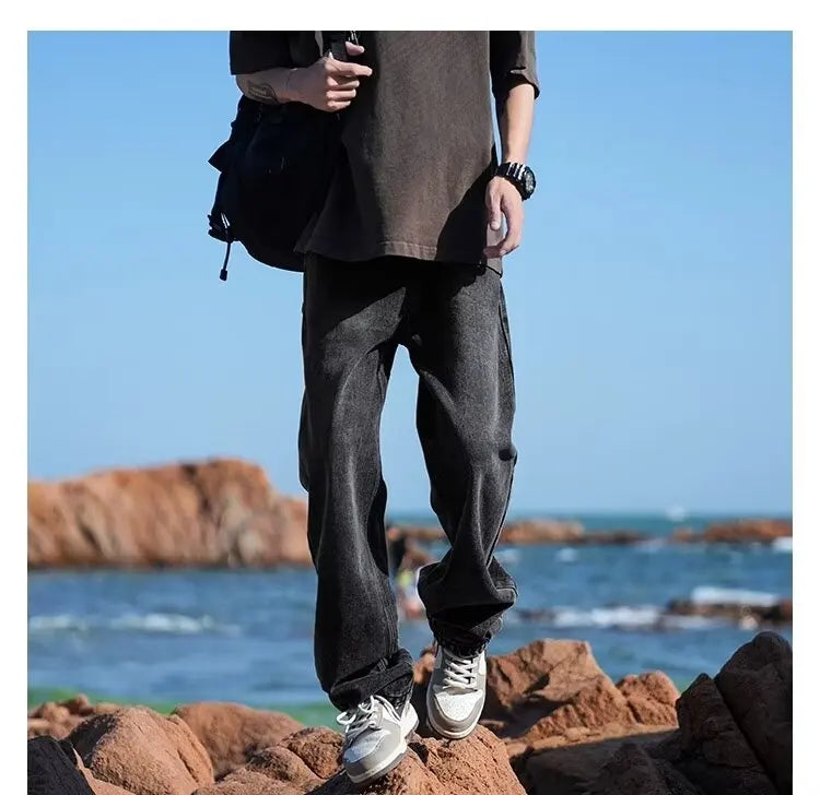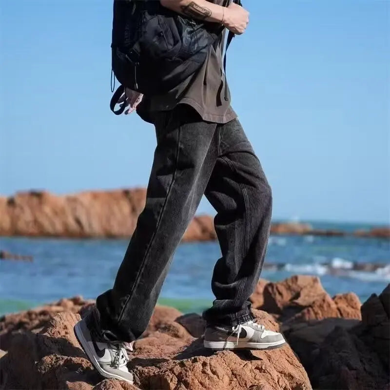 New Retro Washed Large Medium High Waist Men's Straight Blue Men's Trendy Denim Long Pants Men's Clothing Pantalon Homme Jean