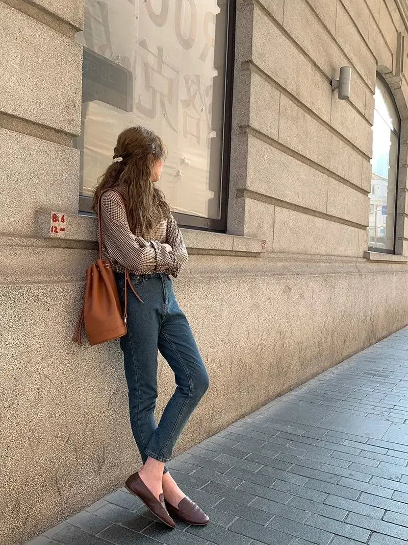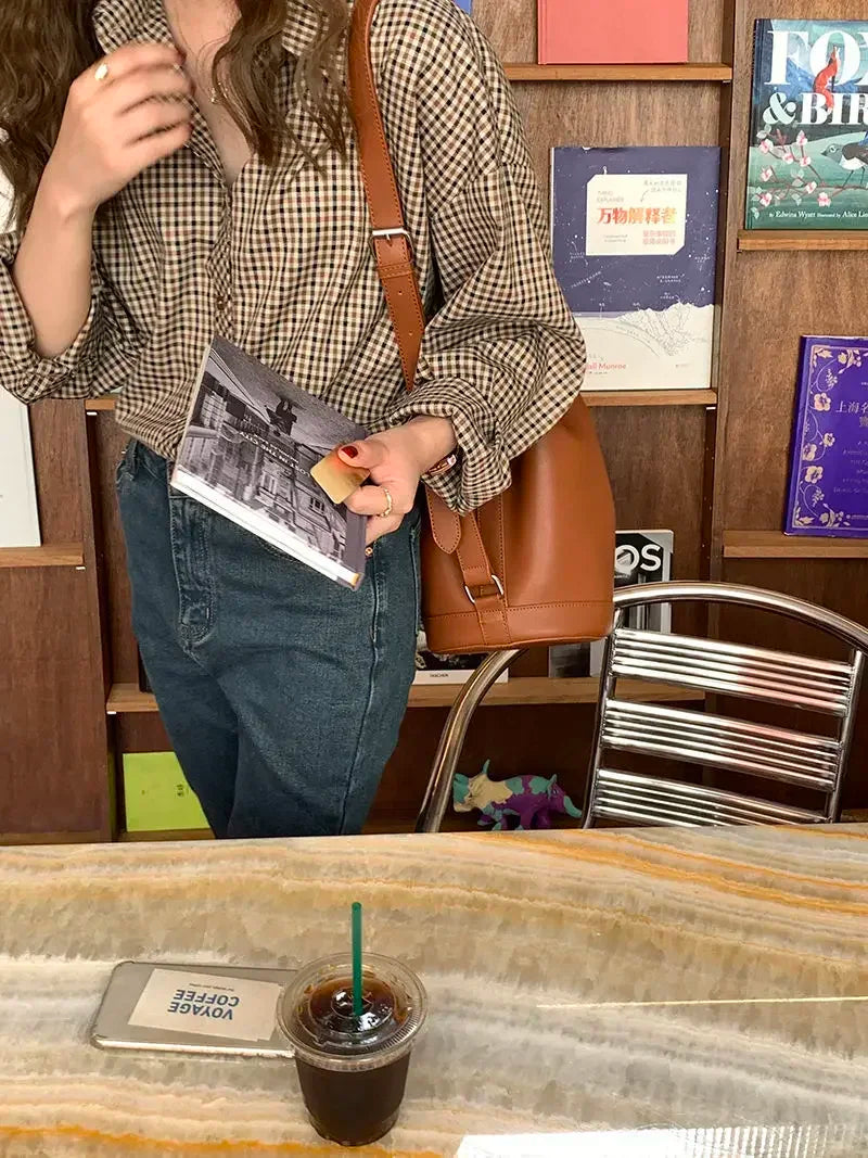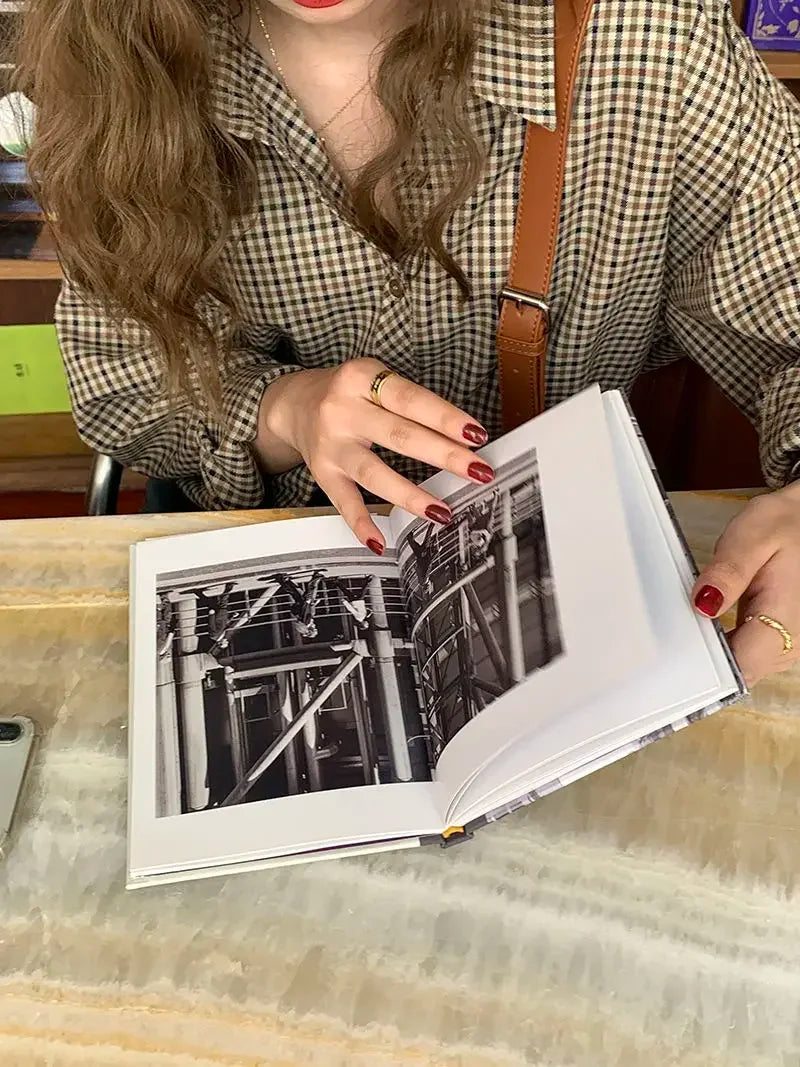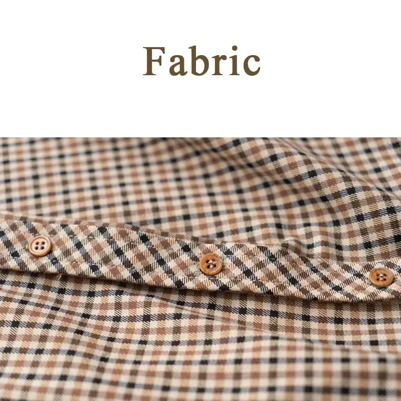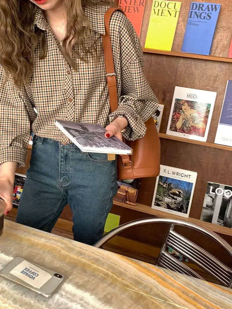 Plaid Shirts Women Retro Turn-down Collar Blouses All-match Straight Hong Kong Style Button Up Elegant Long Sleeve Outwear Femme