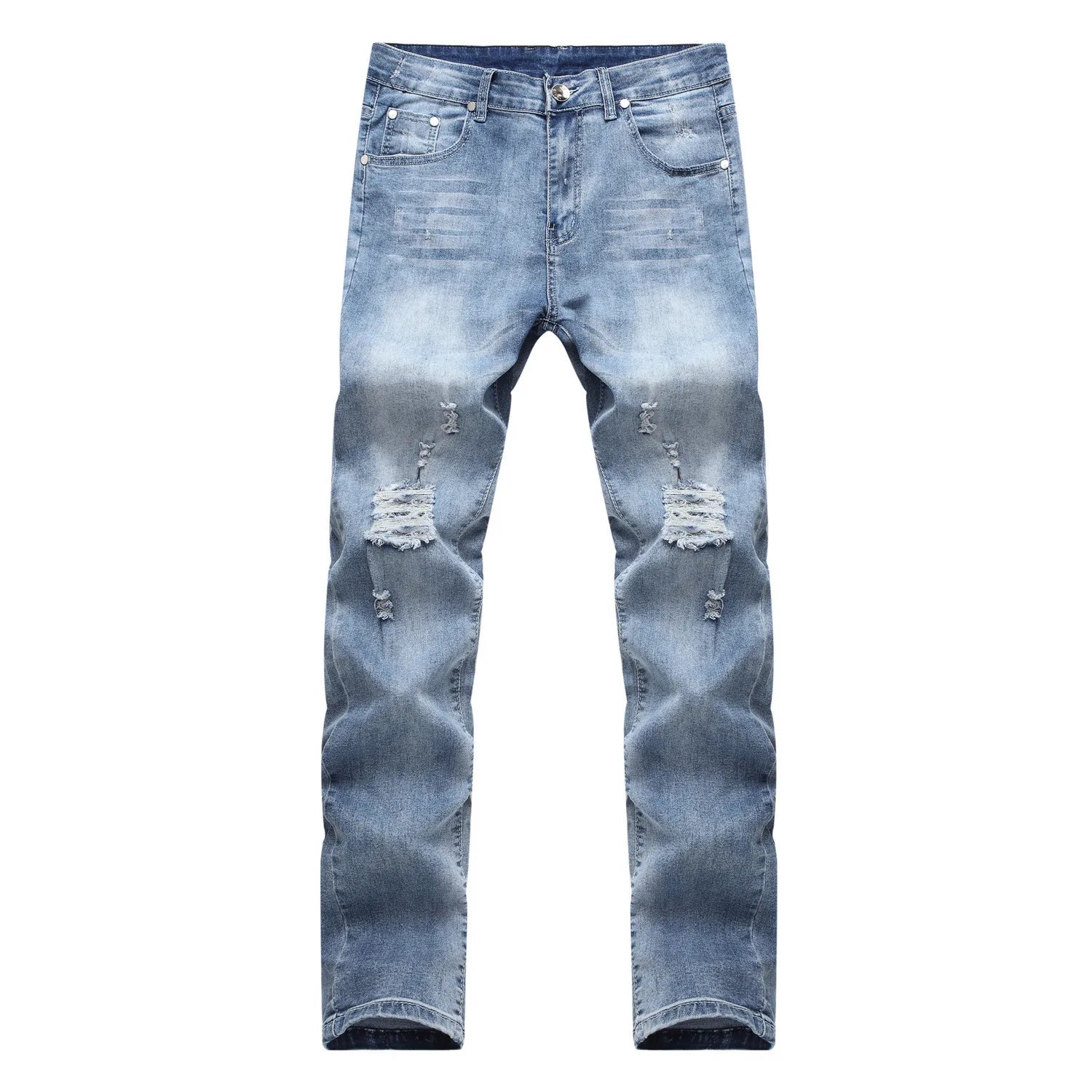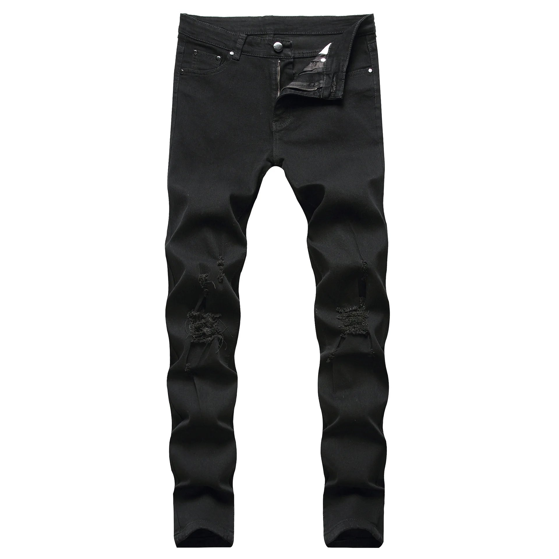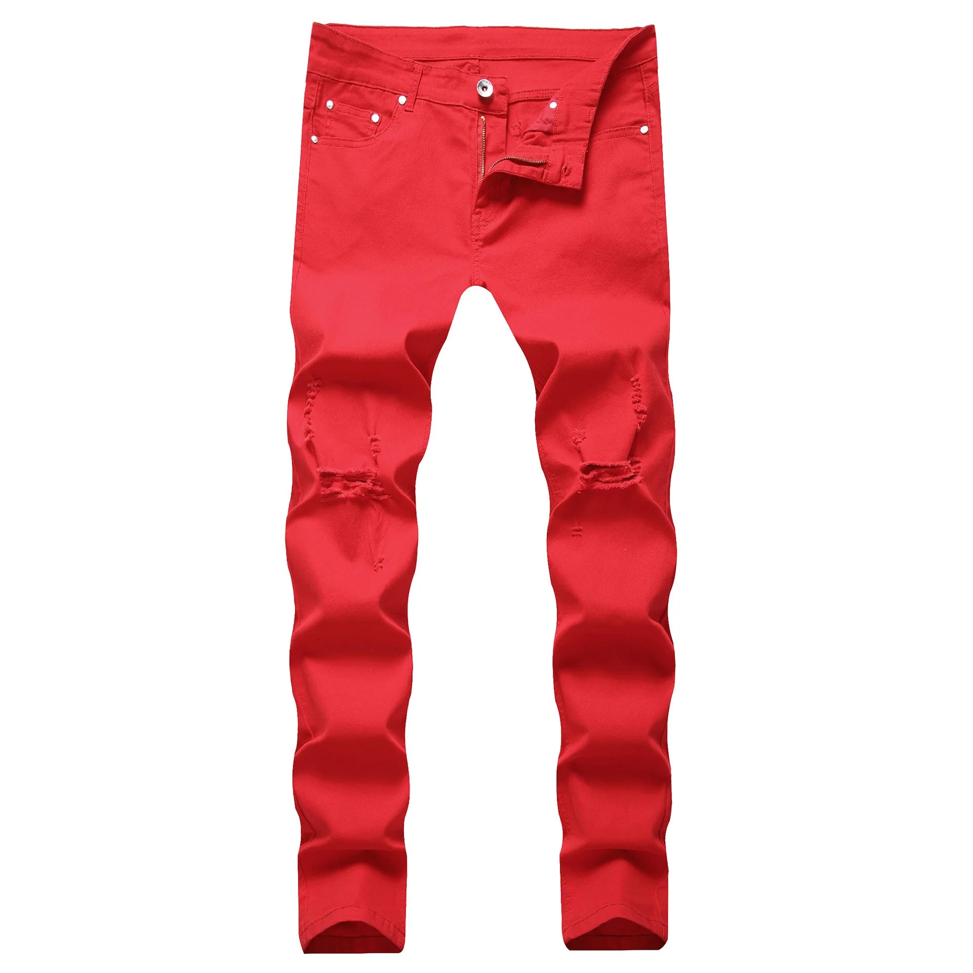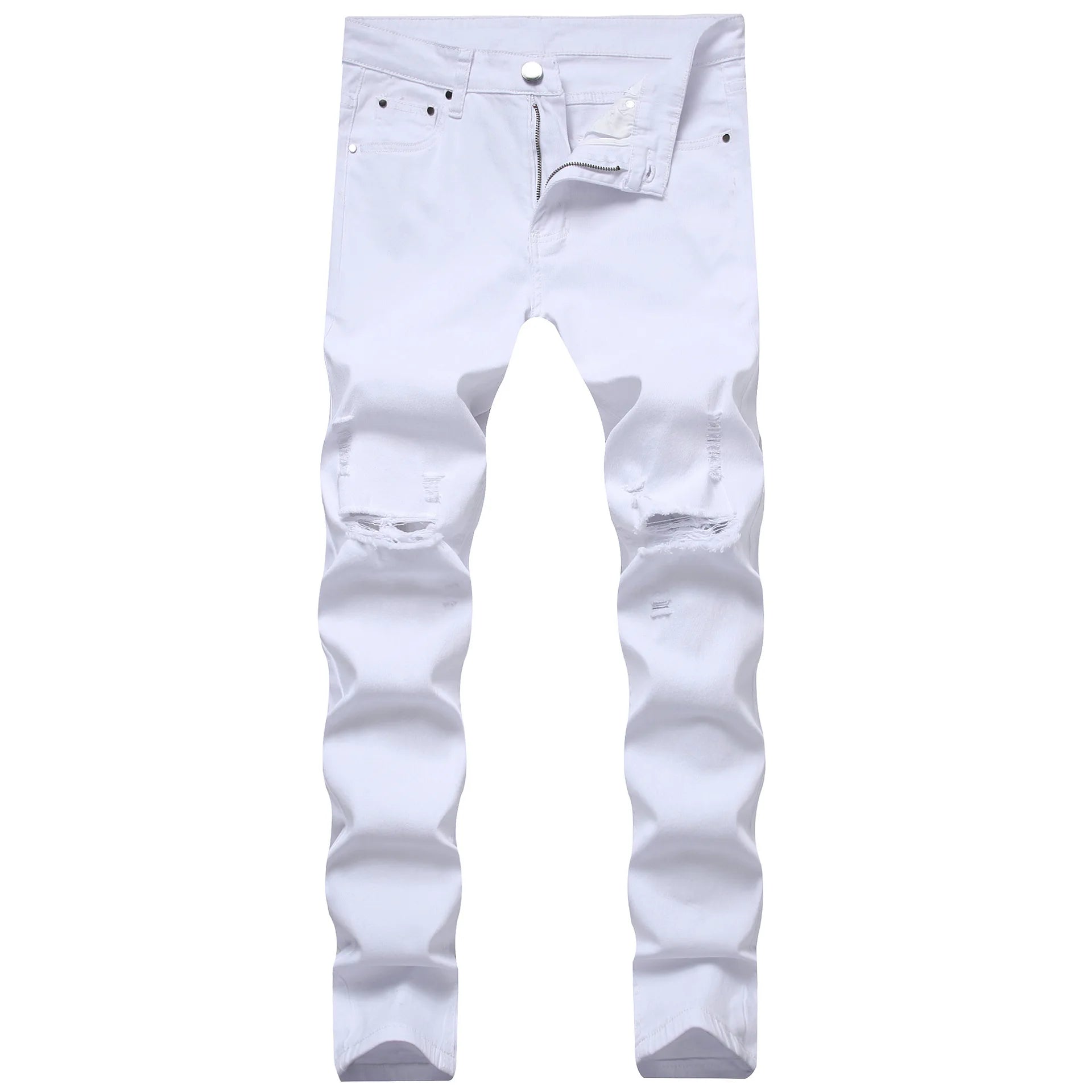 Punk Street Style Ripped Skinny Jeans Men Vintage Wash Solid Denim Trouser Men's Casual Slim Fit Pencil Denim Holes Pants 2025