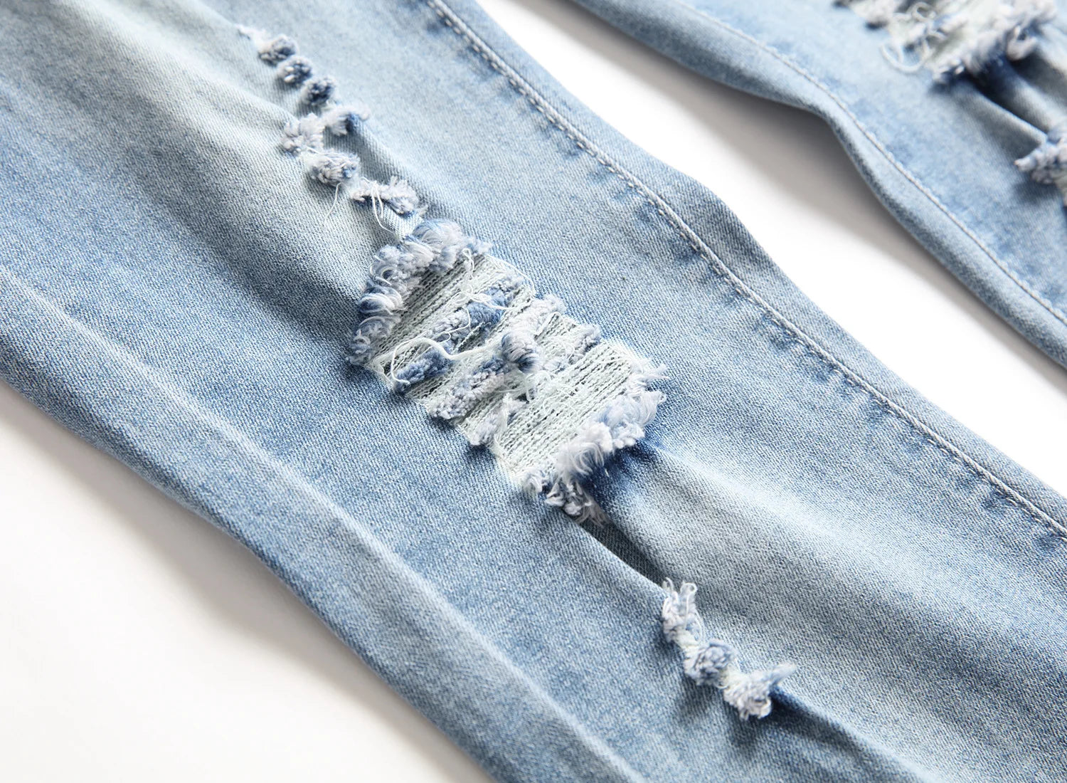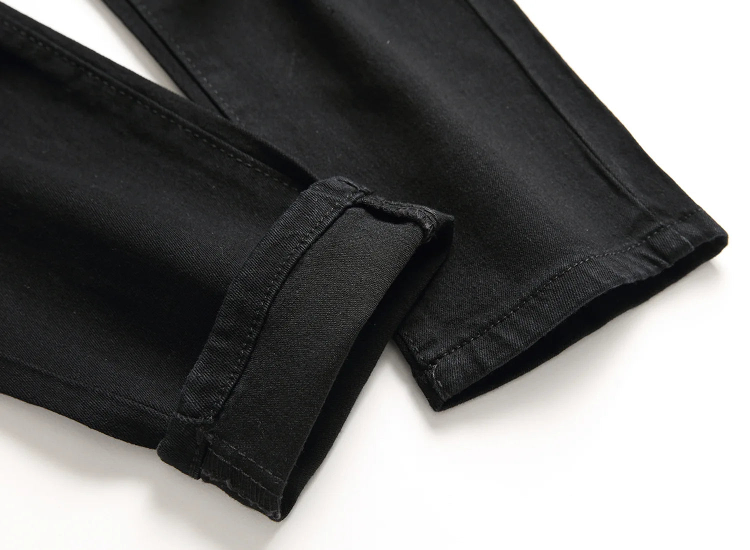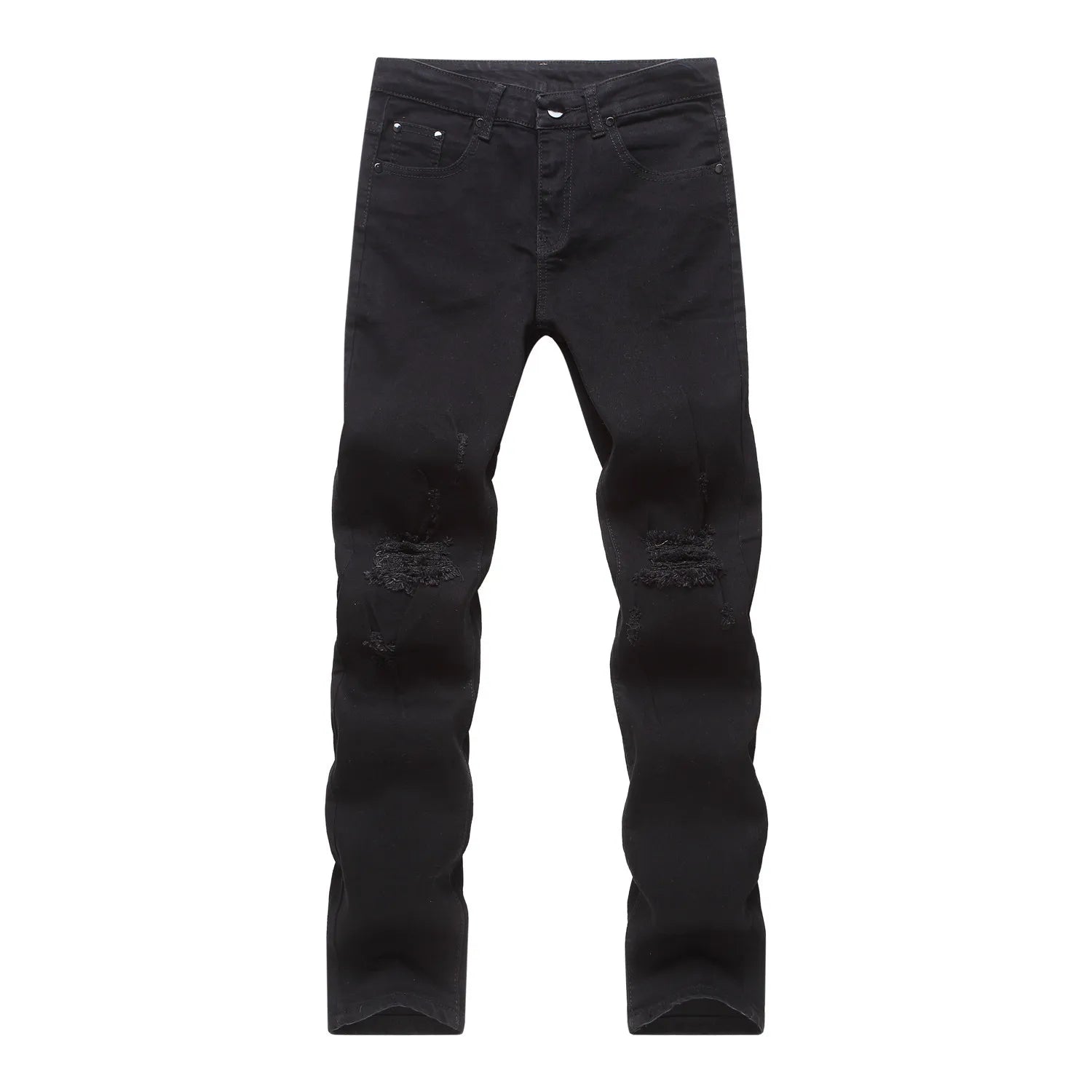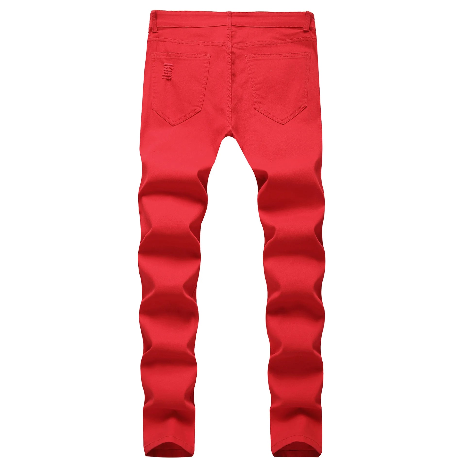 Punk Street Style Ripped Skinny Jeans Men Vintage Wash Solid Denim Trouser Men's Casual Slim Fit Pencil Denim Holes Pants 2025