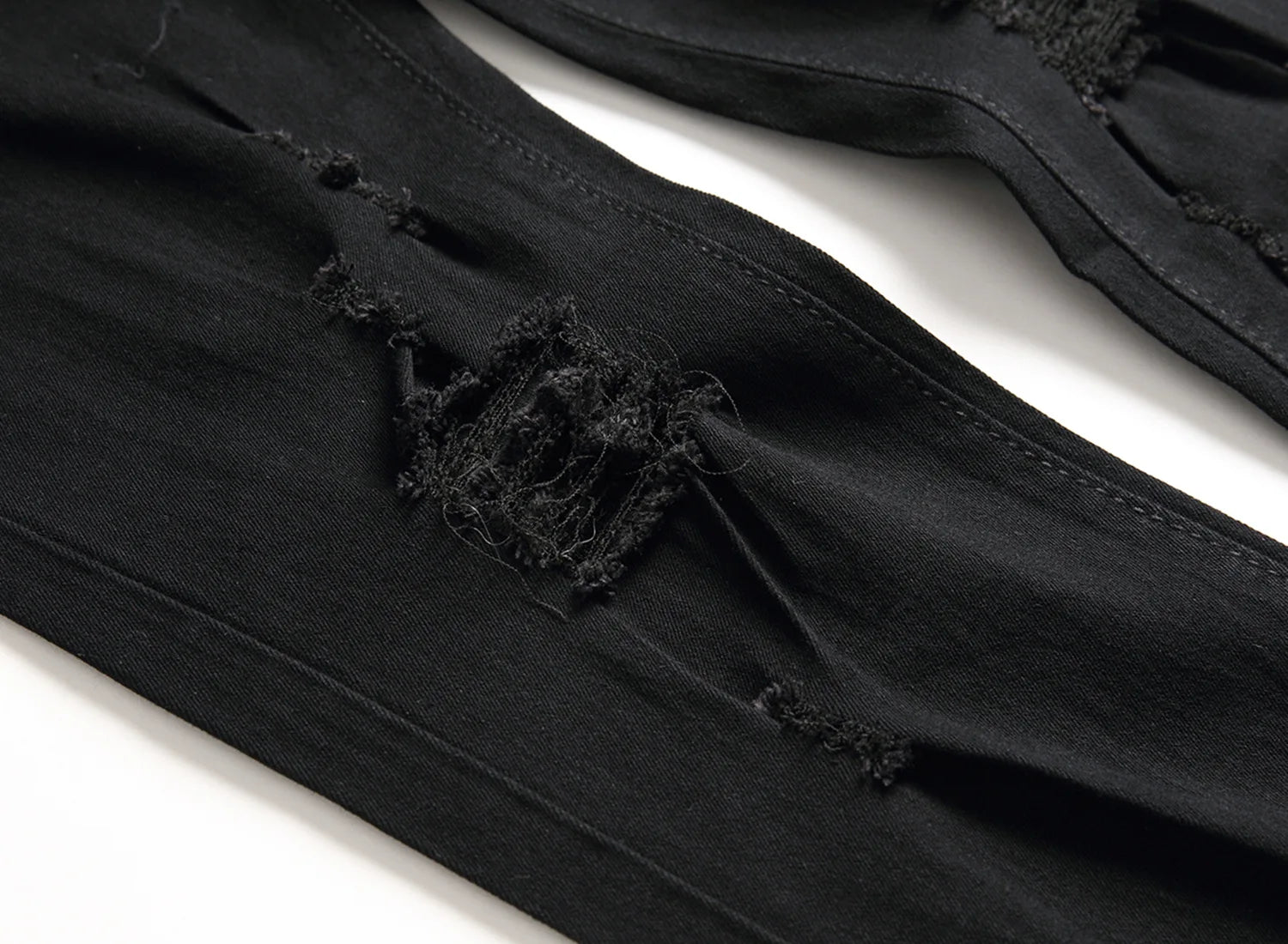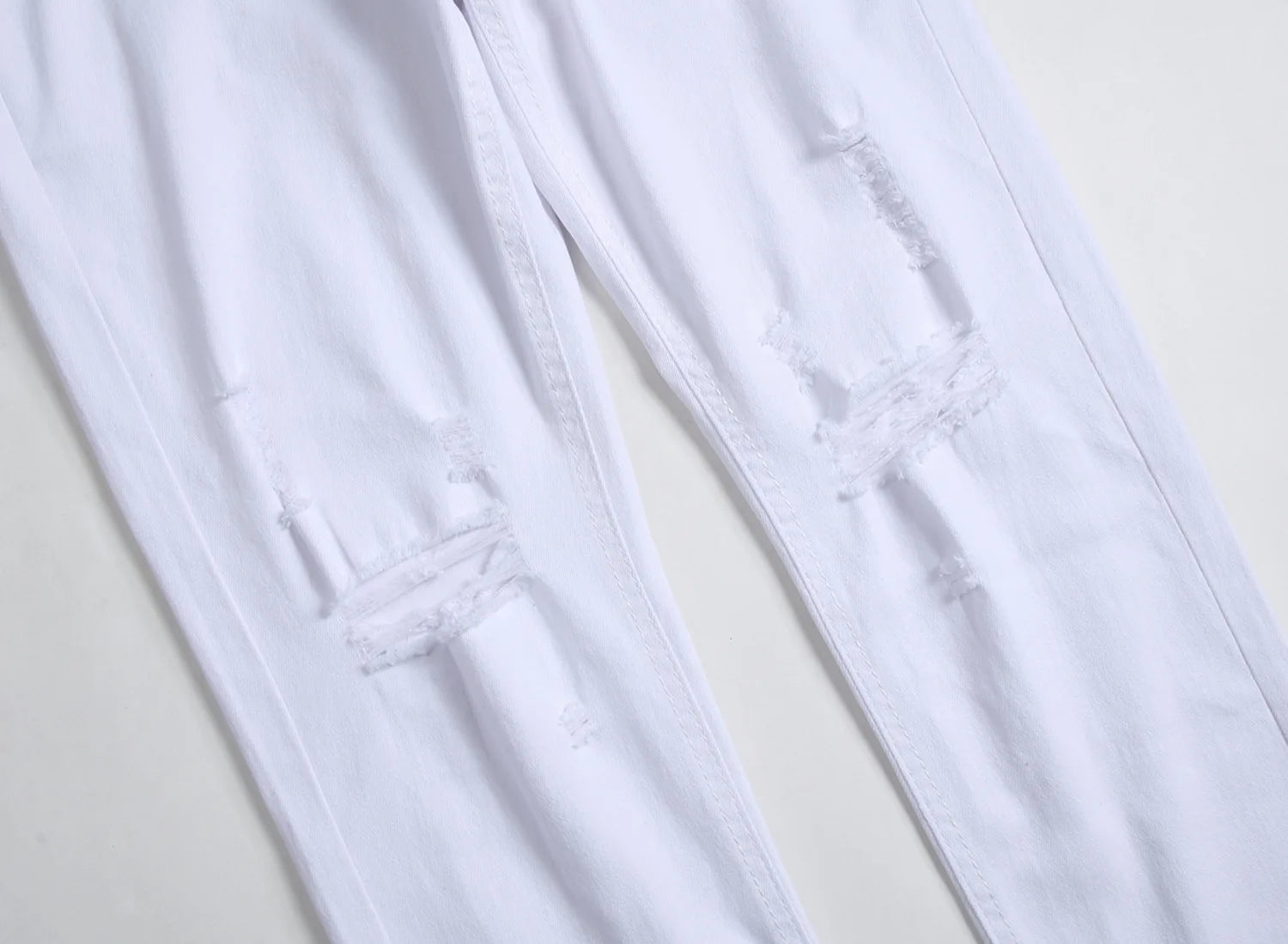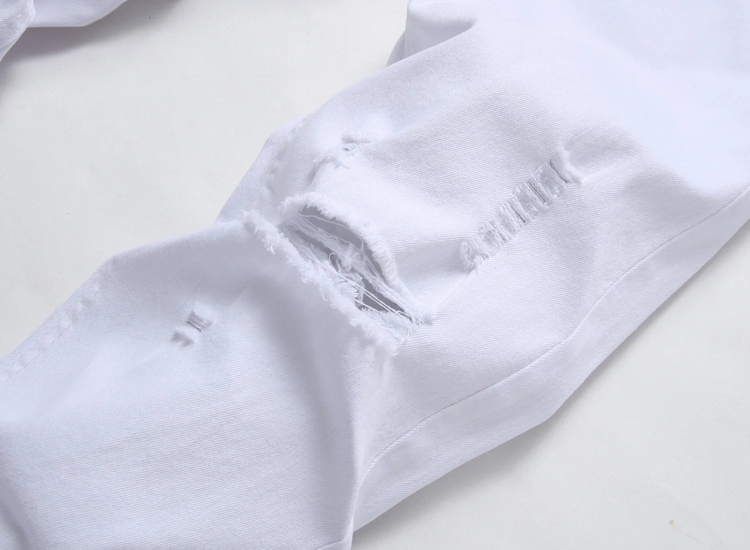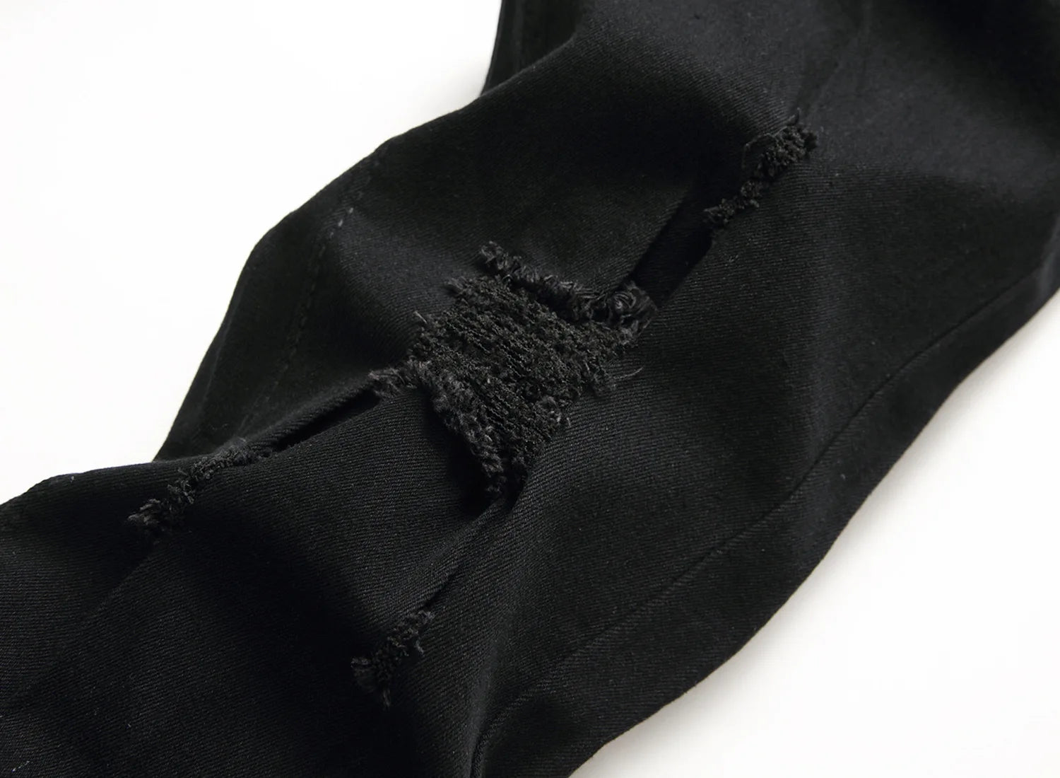 Punk Street Style Ripped Skinny Jeans Men Vintage Wash Solid Denim Trouser Men's Casual Slim Fit Pencil Denim Holes Pants 2025