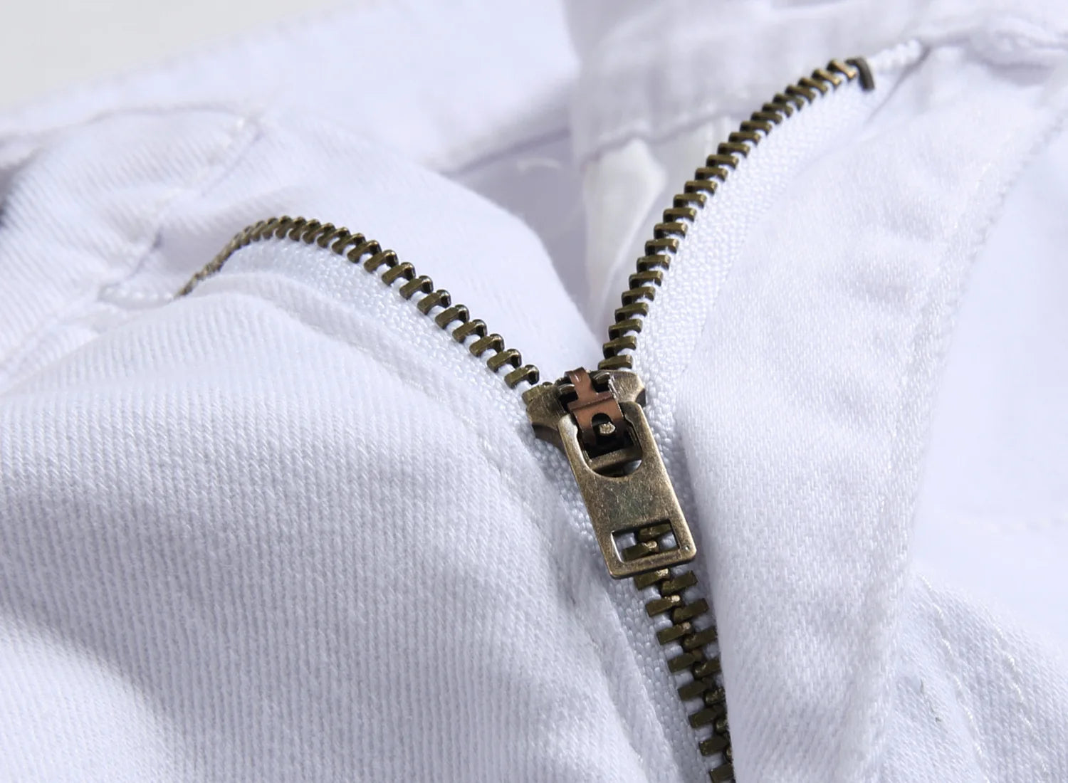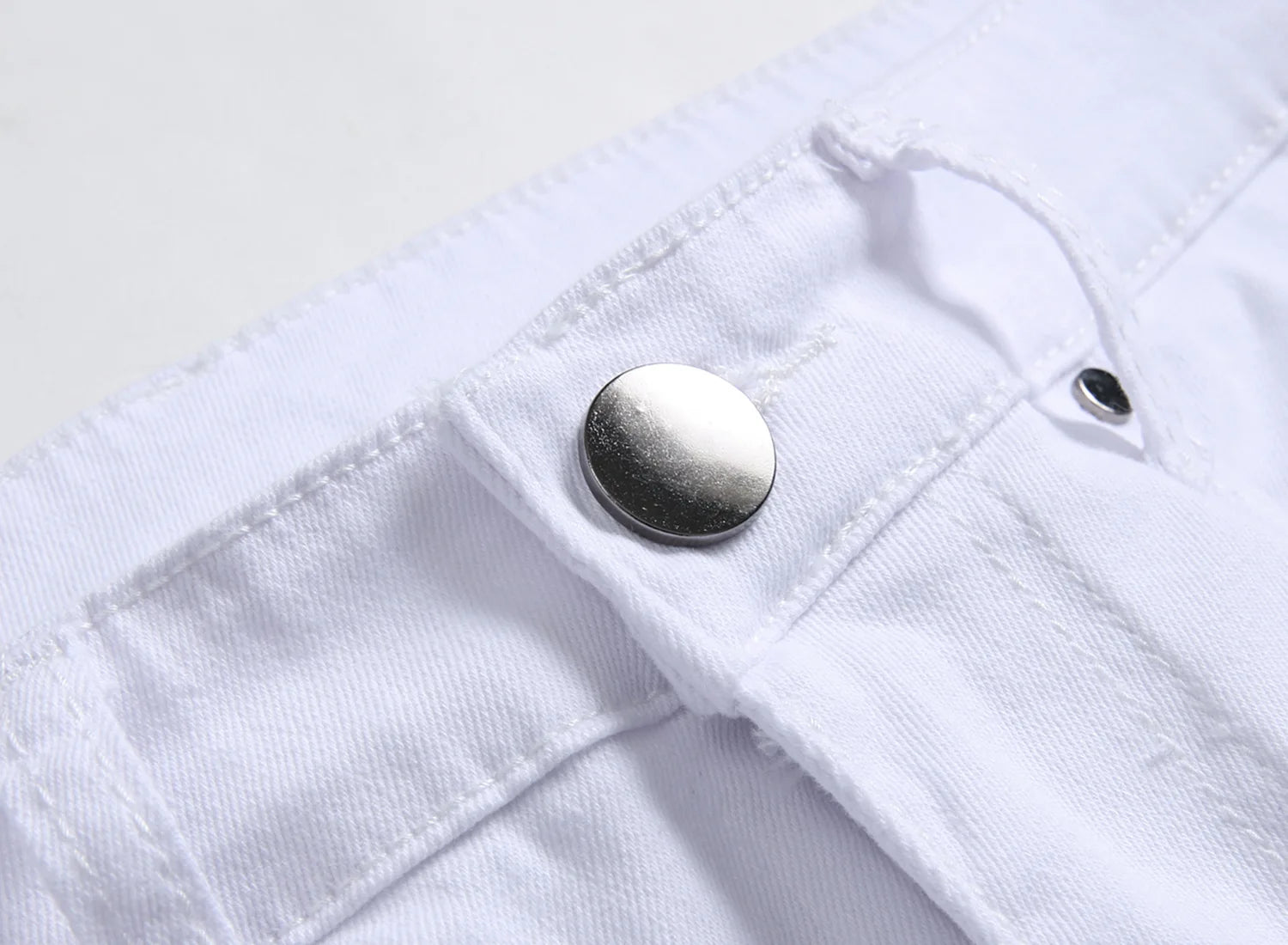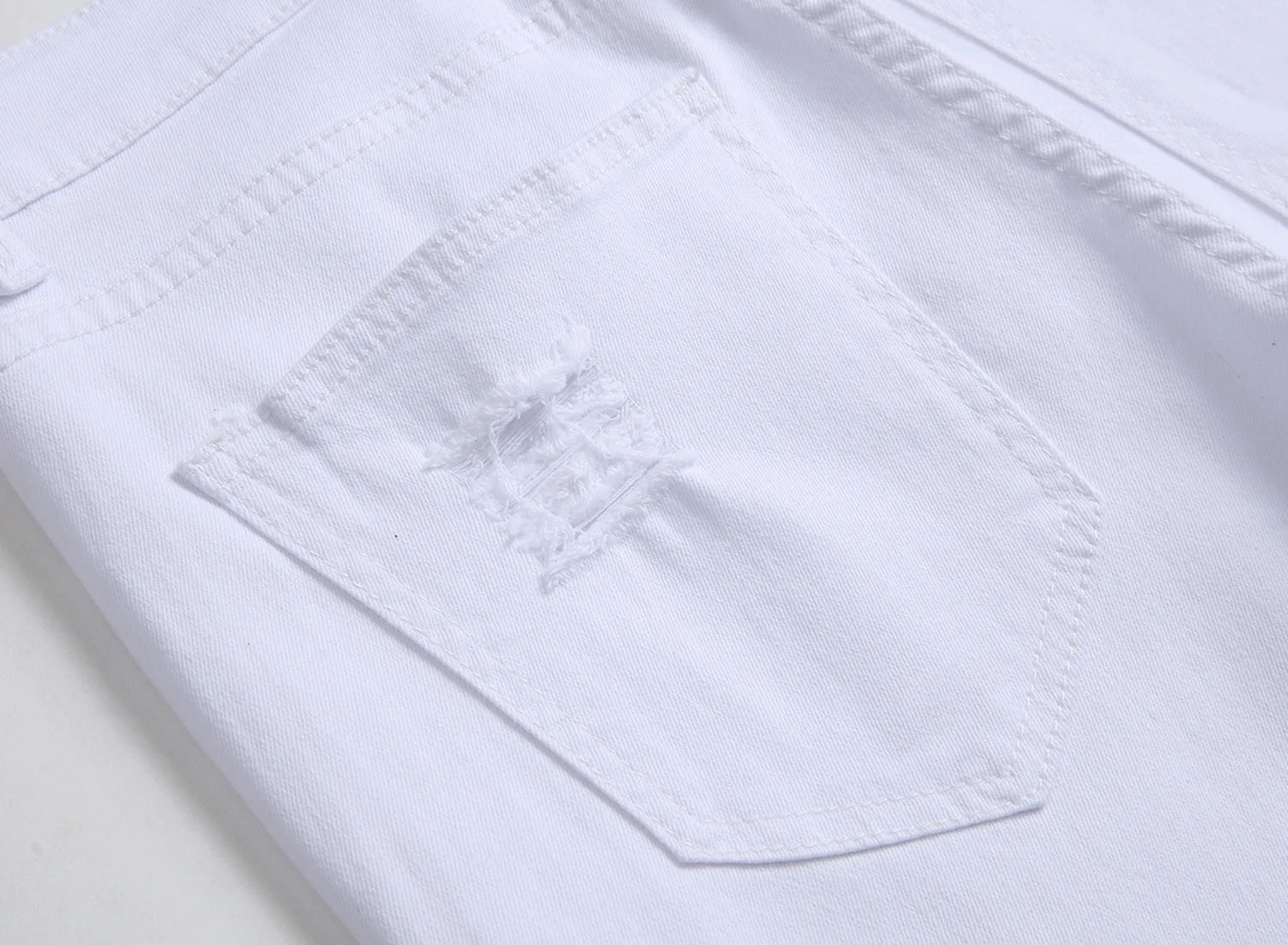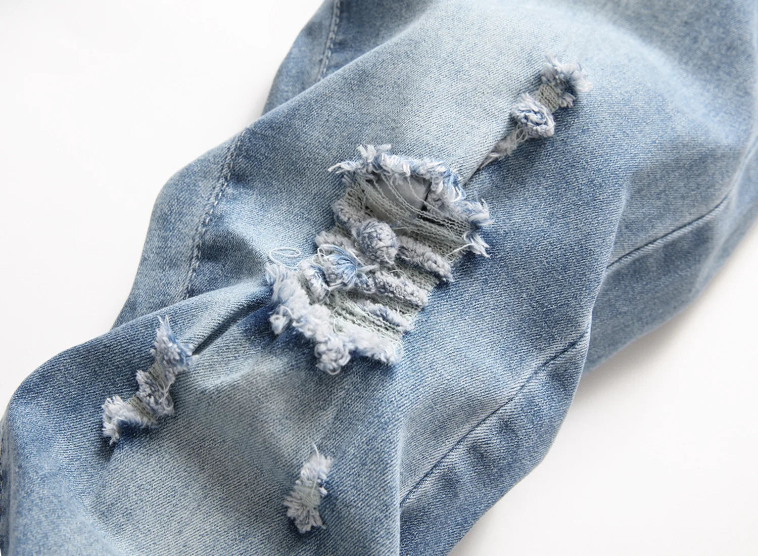 Punk Street Style Ripped Skinny Jeans Men Vintage Wash Solid Denim Trouser Men's Casual Slim Fit Pencil Denim Holes Pants 2025