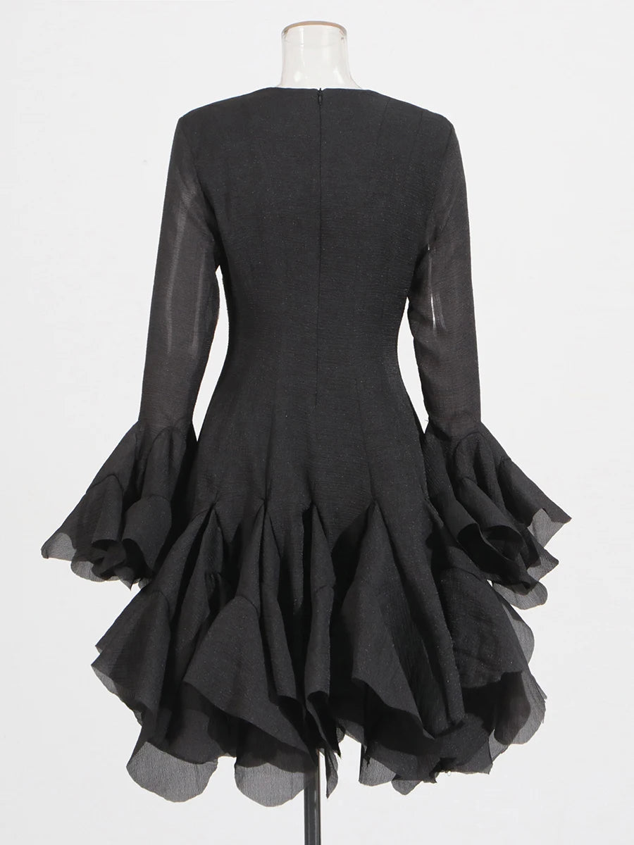 TWOTWINSTYLE Pink Patchwork Ruffle Dress For Women Round Neck Flare Sleeve High Wait Slim Elegant Midi 107CM Dress Female 2025