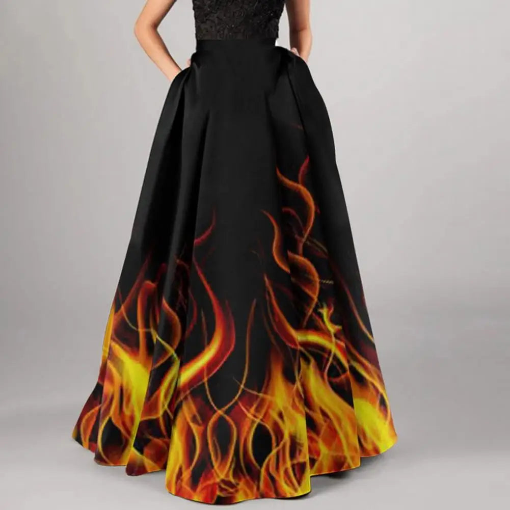 Women High-waisted Long Skirt Flower Printed Skirt for Women Elegant A-line Big Swing Zipper Bohemian Party Prom Maxi Skirt