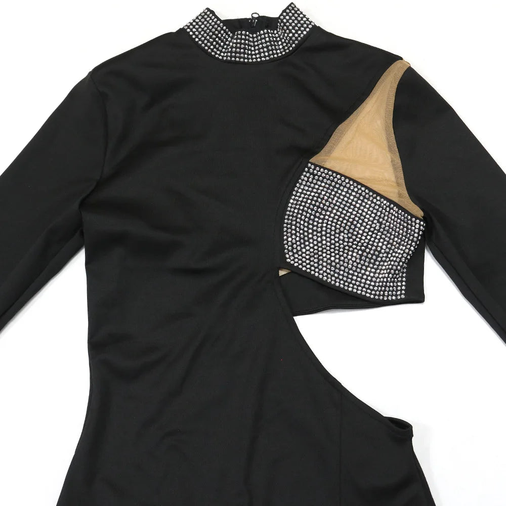 Women Sexy Rhinestone Floor Length High Slit Mermaid Party Dress