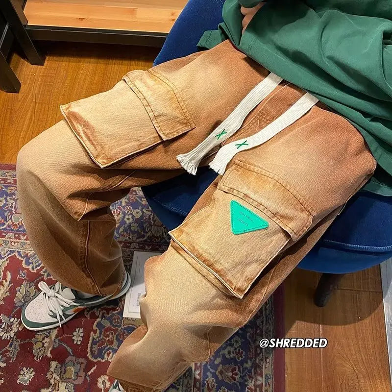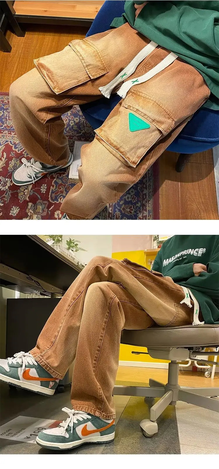Men's Jeans European and American Pocket Straight Loose Large Size Men and Women Jeans Trendy Ins Hot Sale Skateboard Jeans